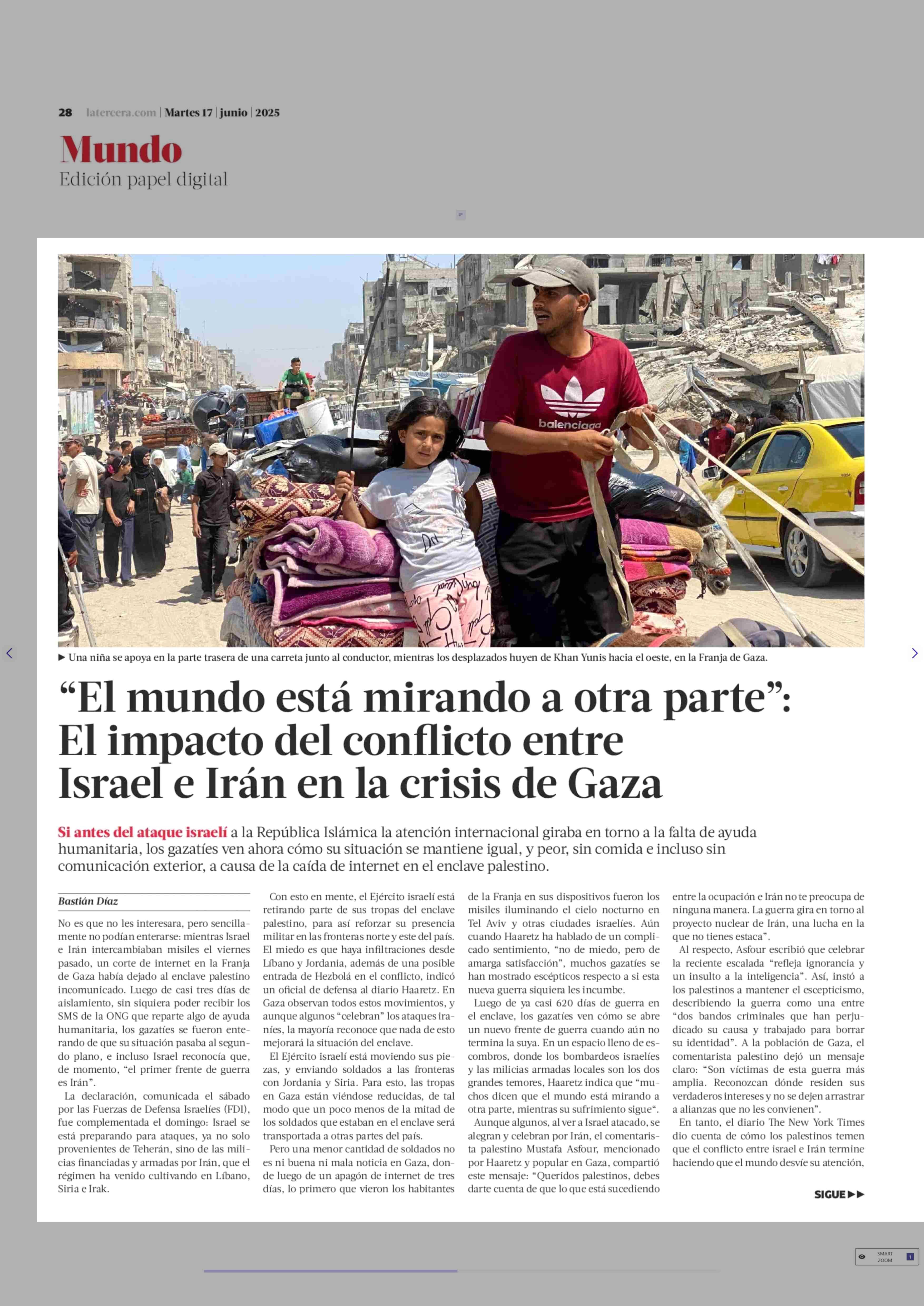 “El mundo está mirando a otra parte”: El impacto del conflicto entre Israel e Irán en la crisis de Gaza 17-06-2025 La Tercera |
