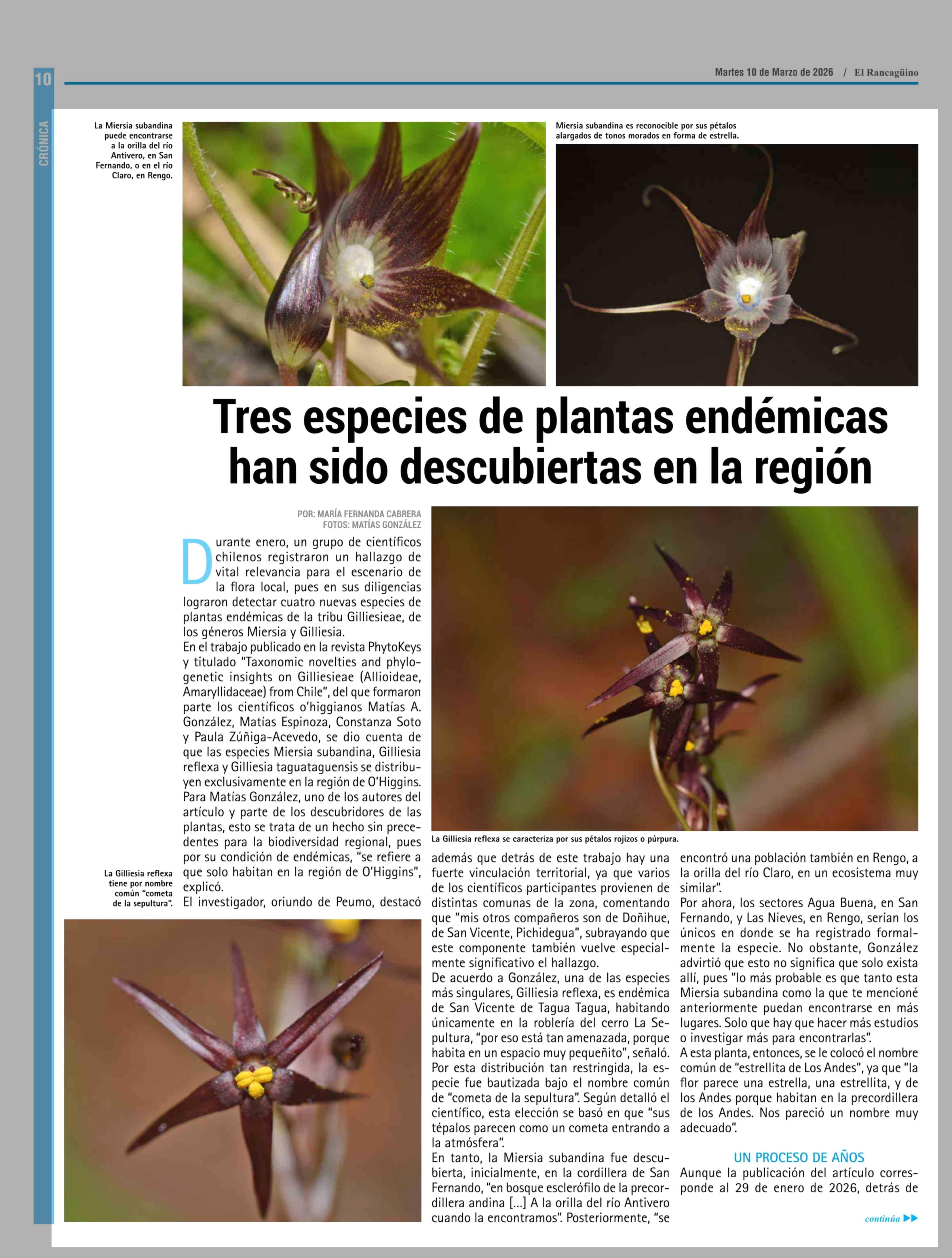 Título: Tres especies de plantas endémicas han sido descubiertas en la región