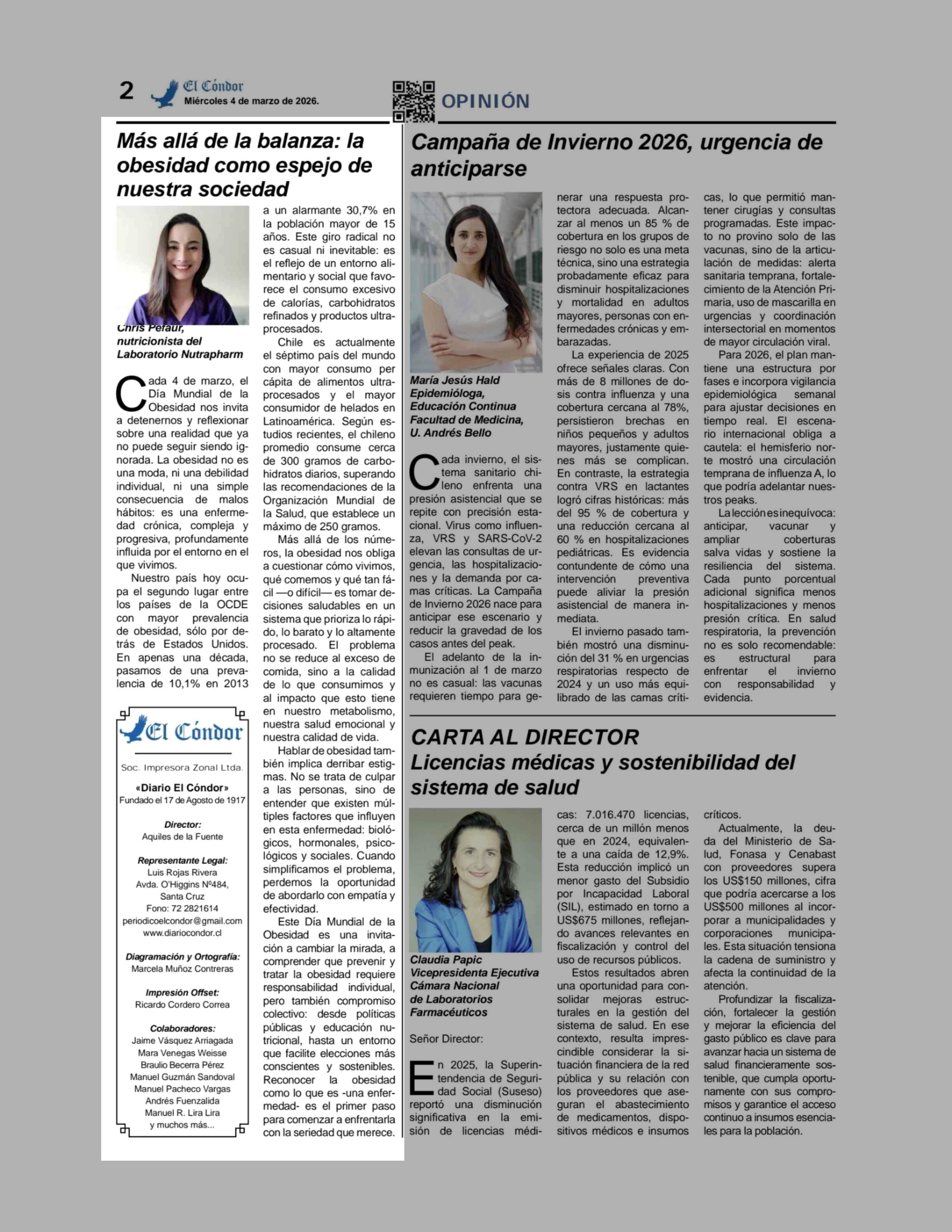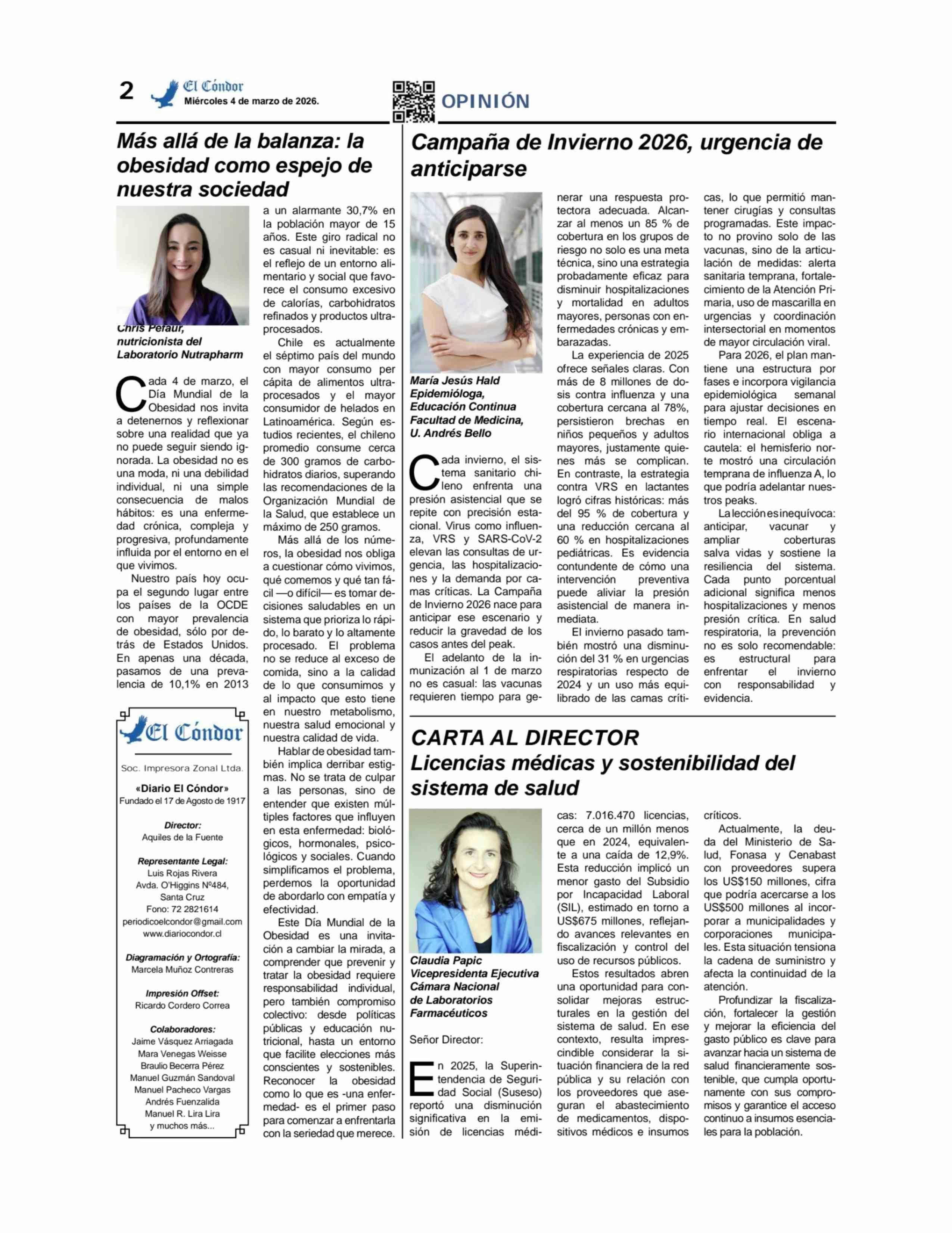 Columnas de Opinión: Más allá de la balanza: la obesidad como espejo de nuestra sociedad 04-03-2026 Diario El Cóndor |