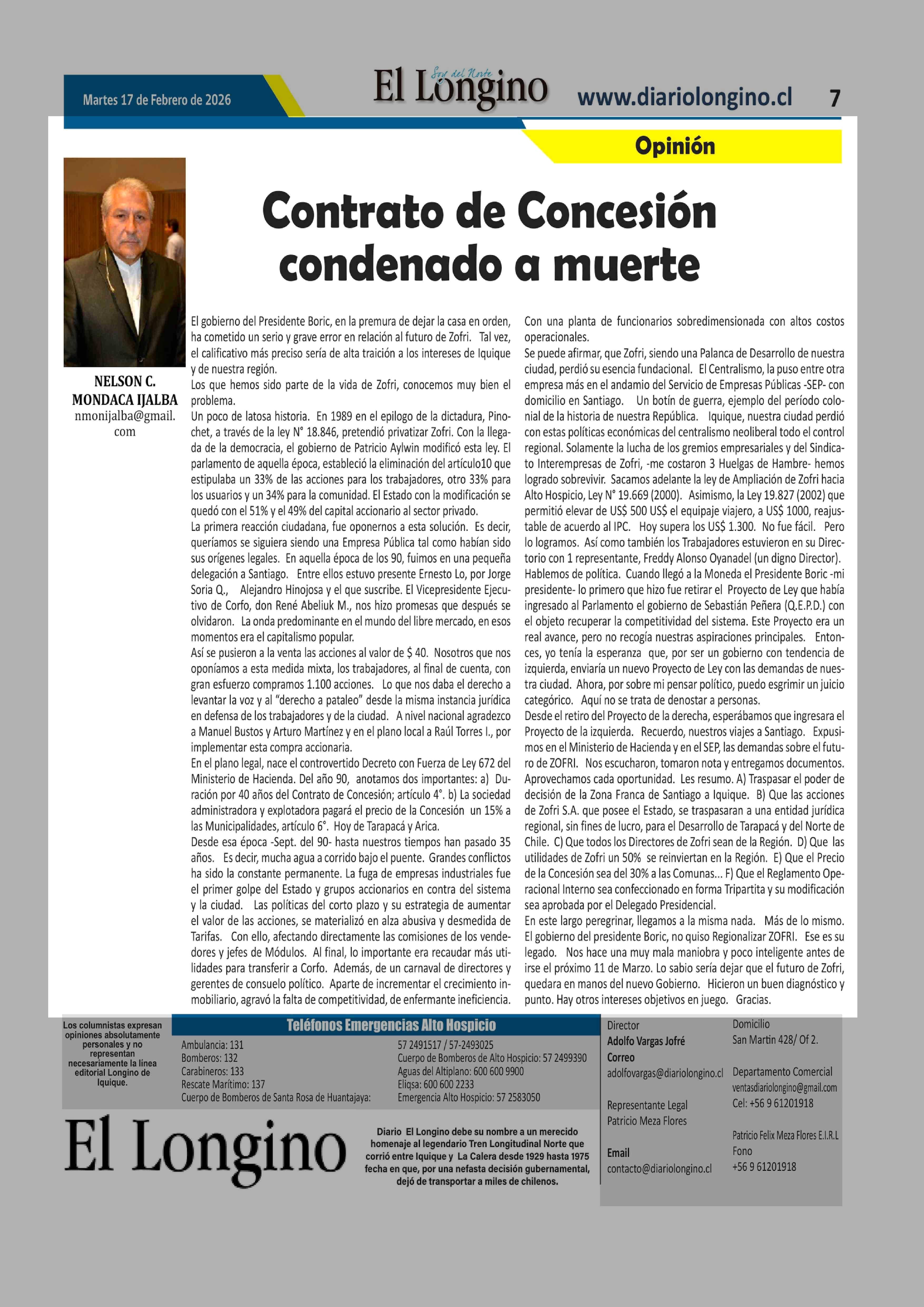 | Fecha: | 17-02-2026 | Sector: | Columnas de Opinión | Región: | Región de Tarapacá |