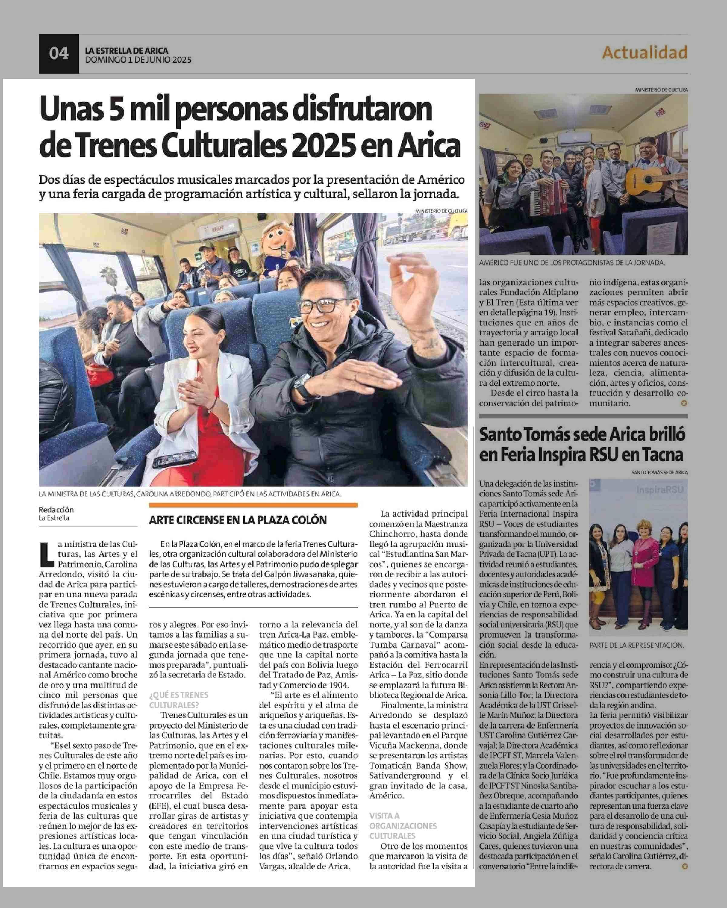 Unas 5 mil personas disfrutaron de Trenes Culturales 2025 en Arica 01-06-2025 La Estrella de Arica |