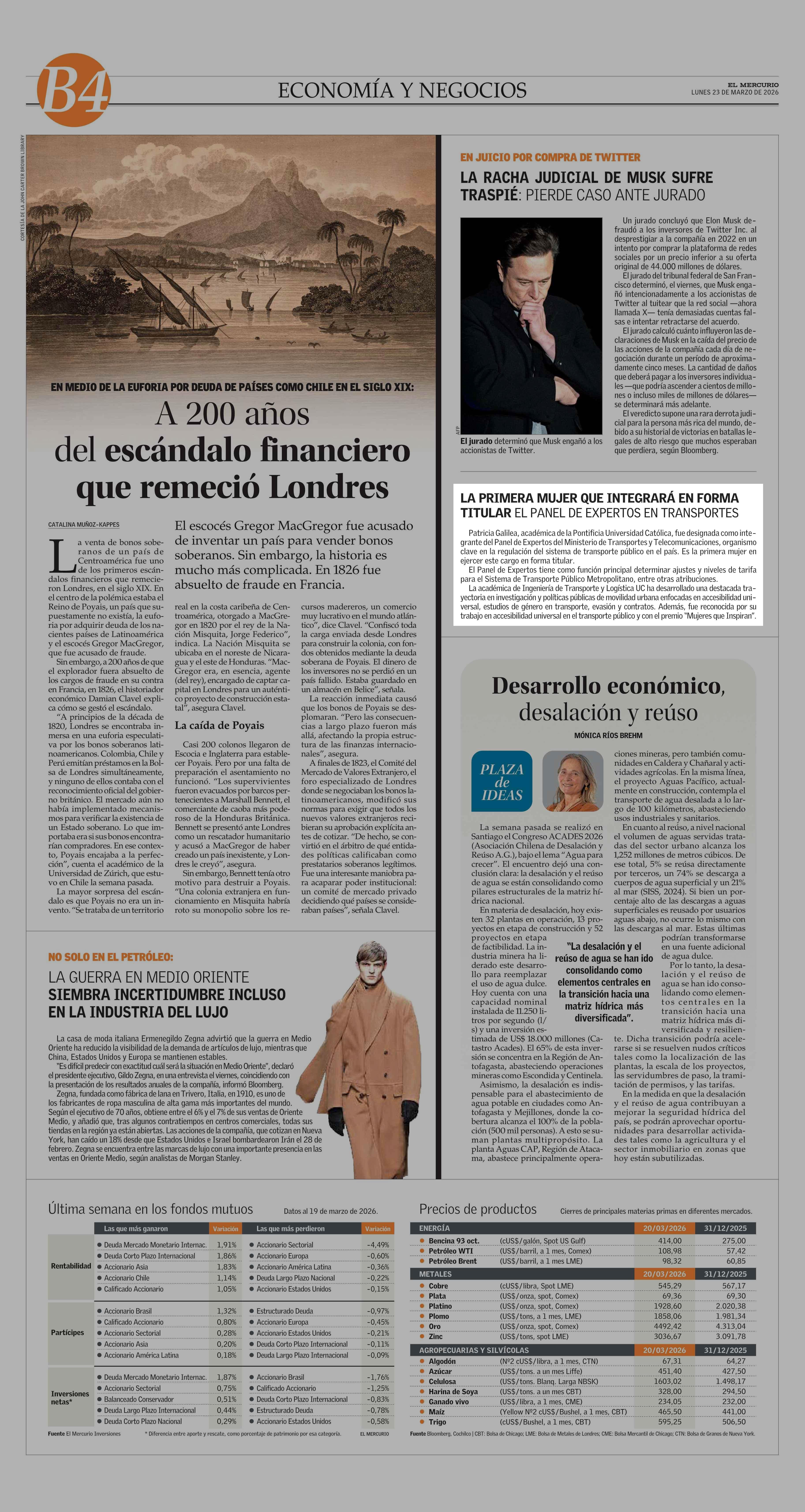 LA PRIMERA MUJER QUE INTEGRARÁ EN FORMA TITULAR EL PANEL DE EXPERTOS EN TRANSPORTES 23-03-2026 El Mercurio |