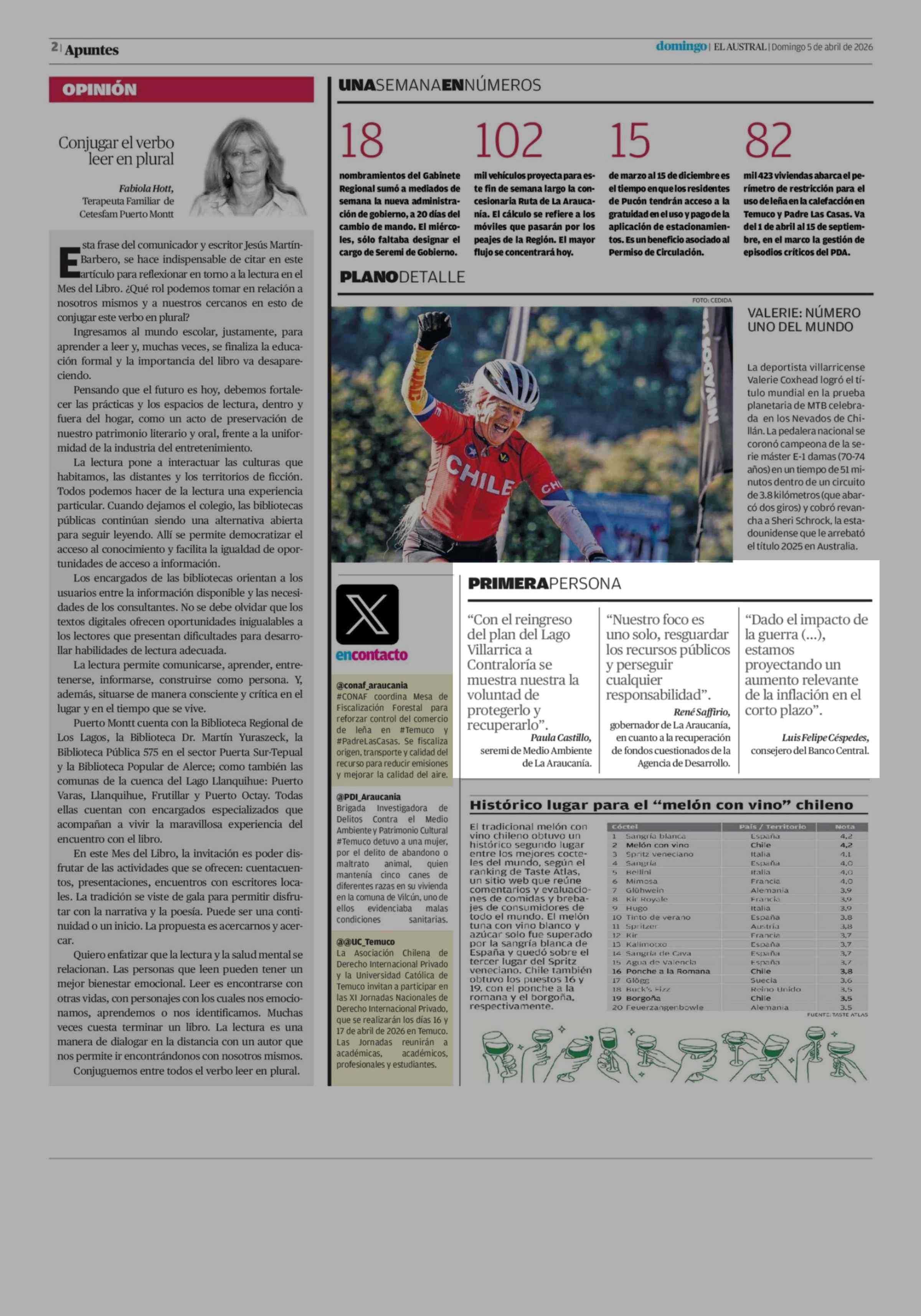 PRIMERA PERSONA 05-04-2026 El Austral de la Araucanía |