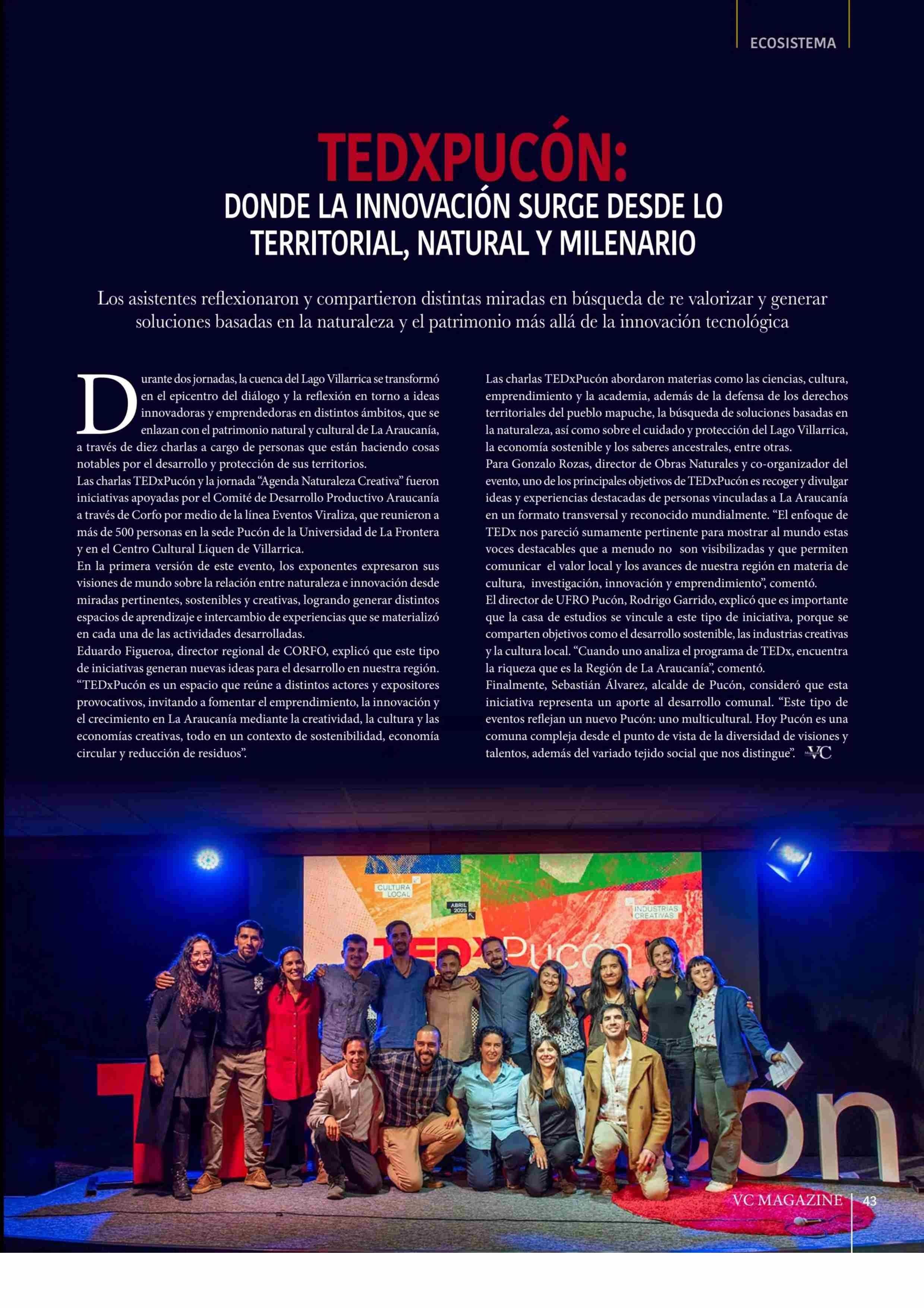 TEDXPUCÓN DONDE LA INNOVACIÓN SURGE DESDE LO TERRITORIAL, NATURAL Y MILENARIO 23-05-2025 Revista vcmagazine |