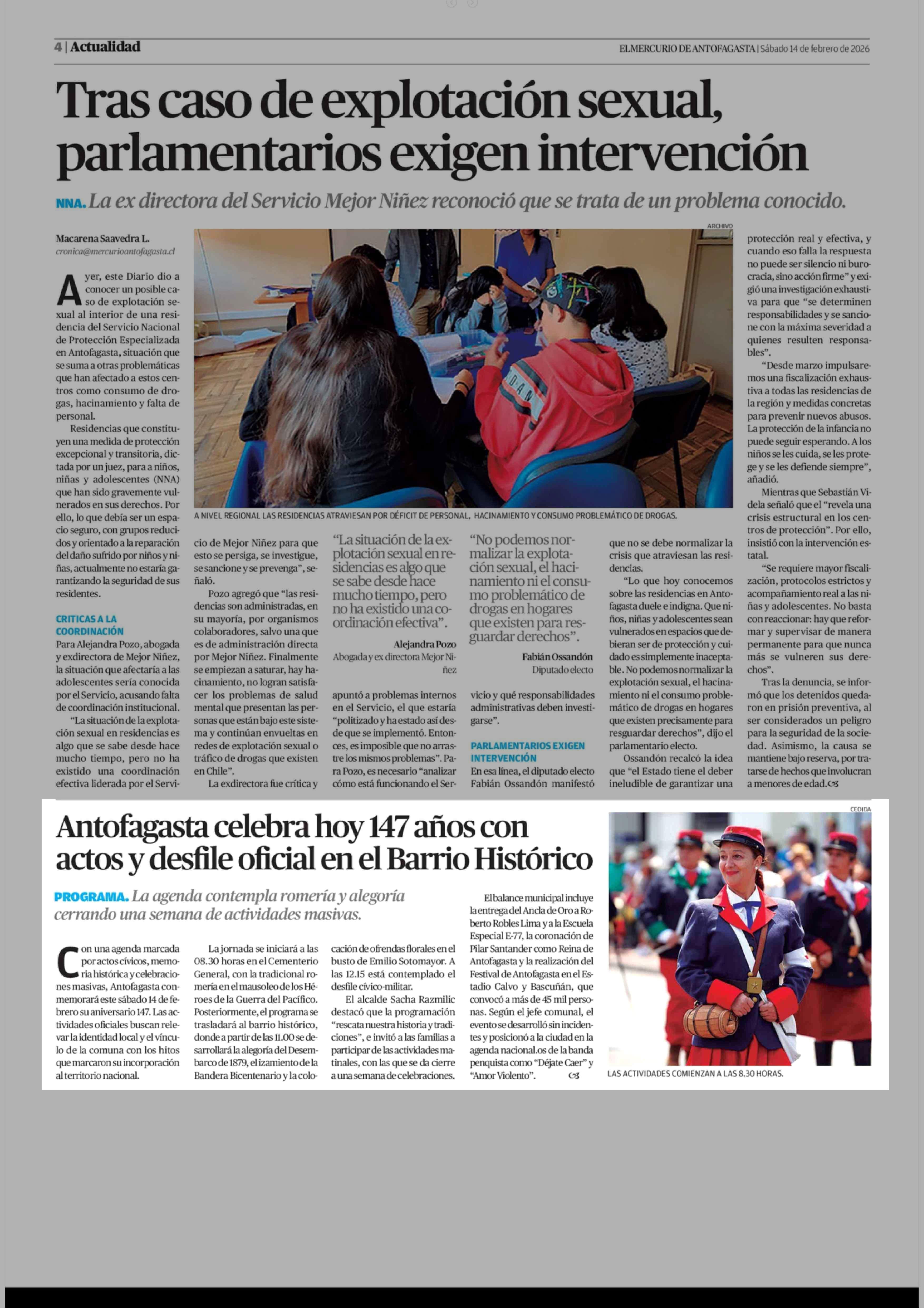 | Fecha: | 14-02-2026 | Sector: | Noticia general | Región: | Región de Antofagasta |