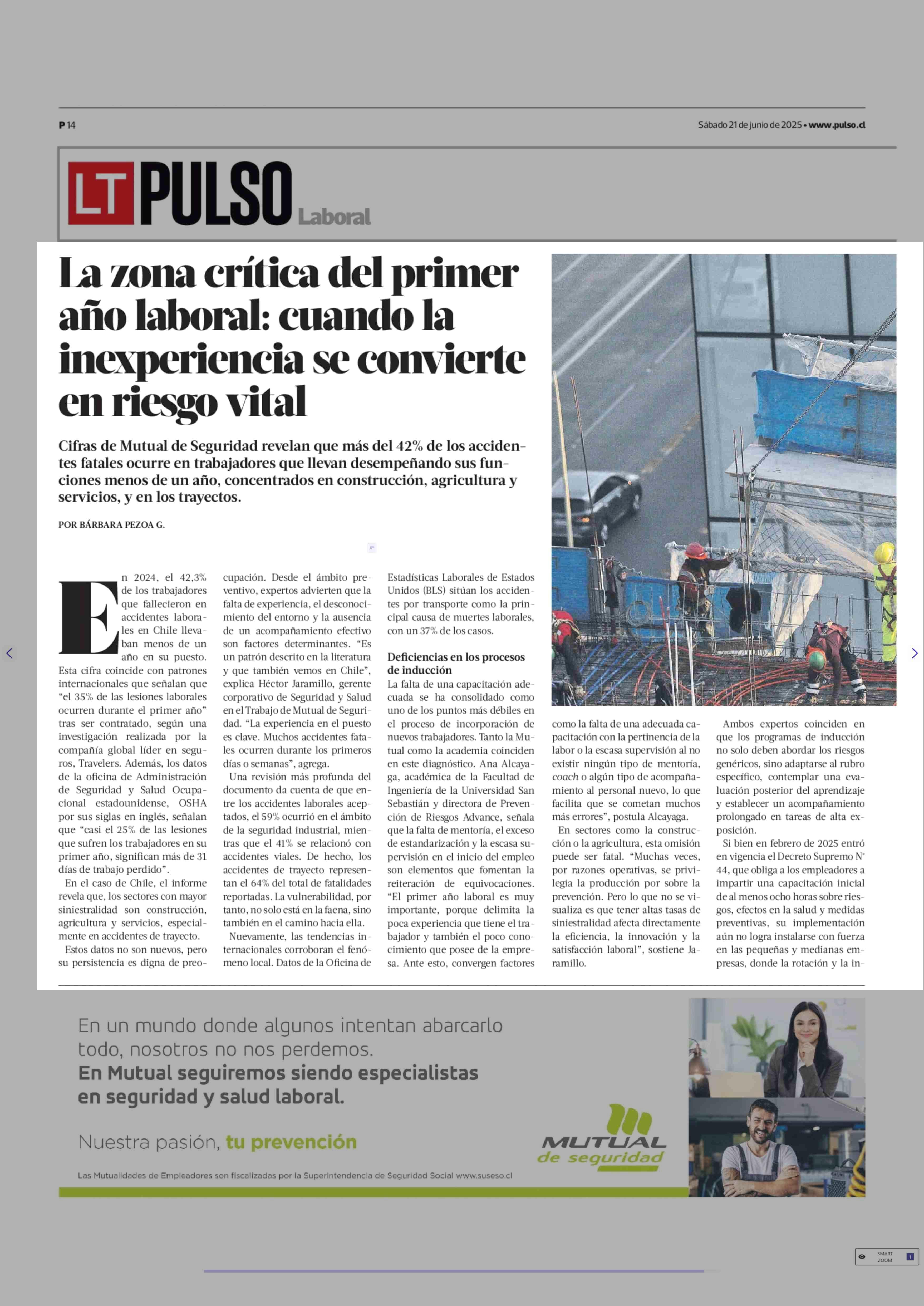 La zona crítica del primer año laboral: cuando la inexperiencia se convierte en riesgo vital 21-06-2025 La Tercera |