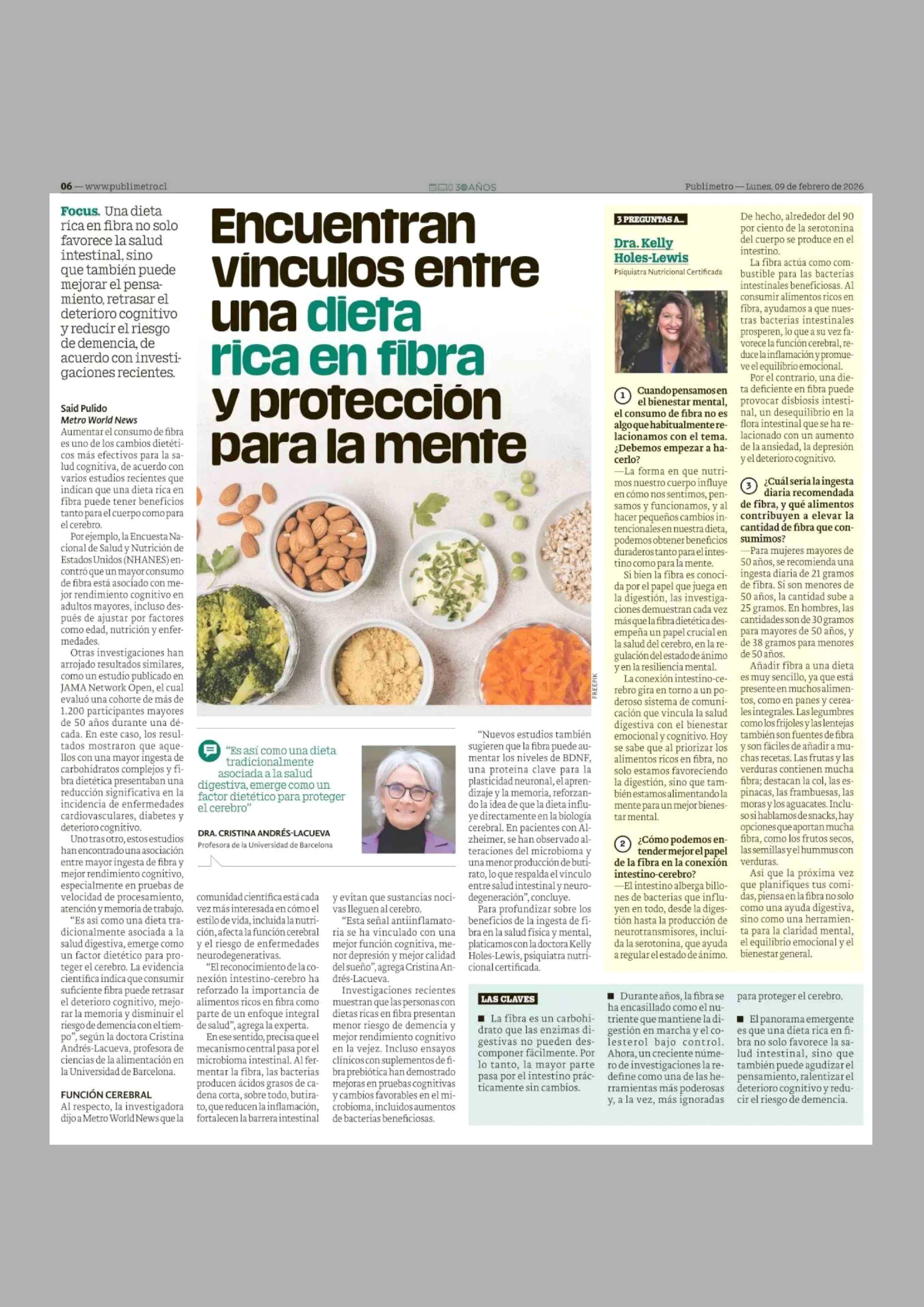 Título: Encuentran vinculos entre una dieta rica en fibra y protección para la mente