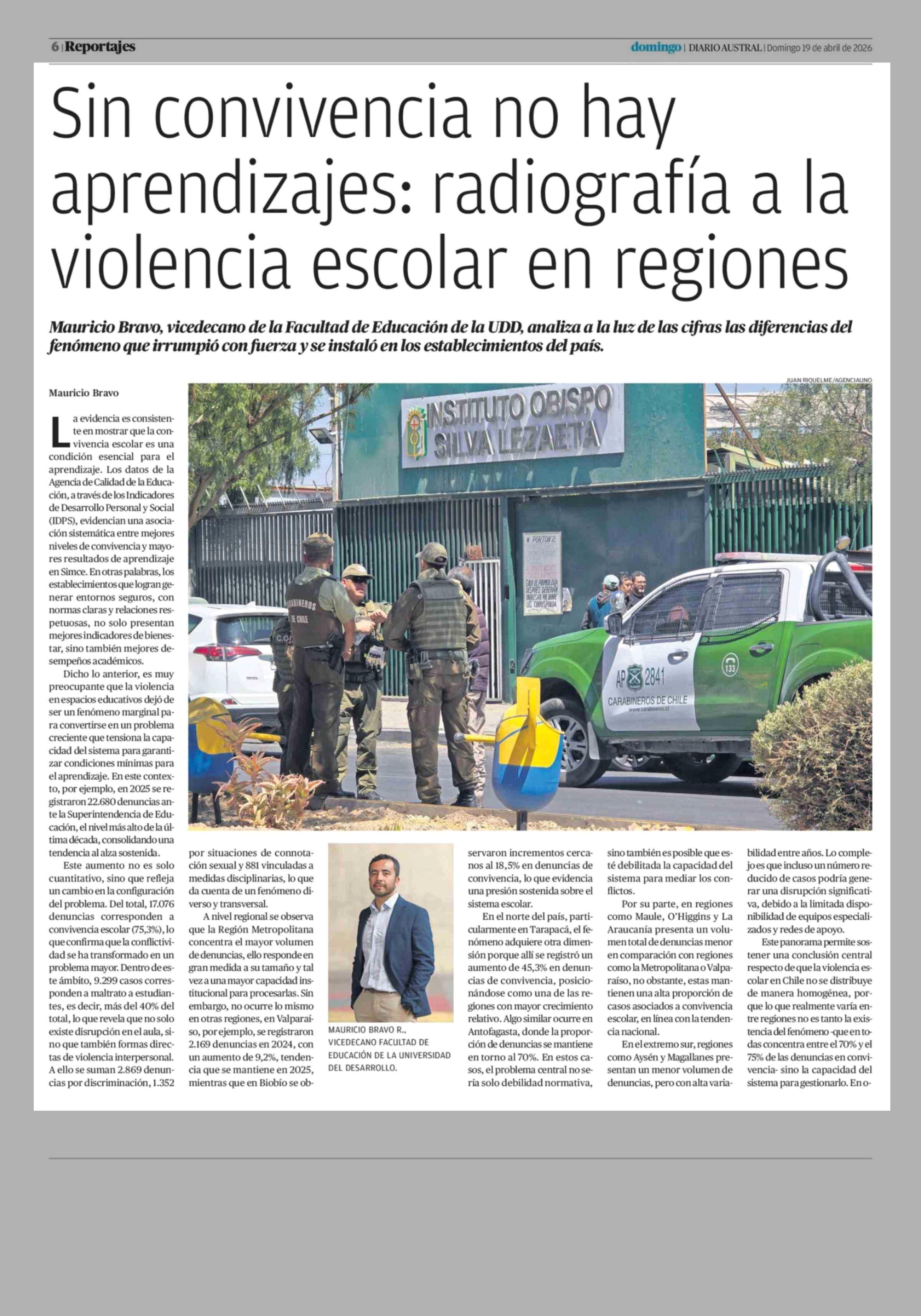 Título: Sin convivencia no hay aprendizajes: radiografía a la violencia escolar en regiones