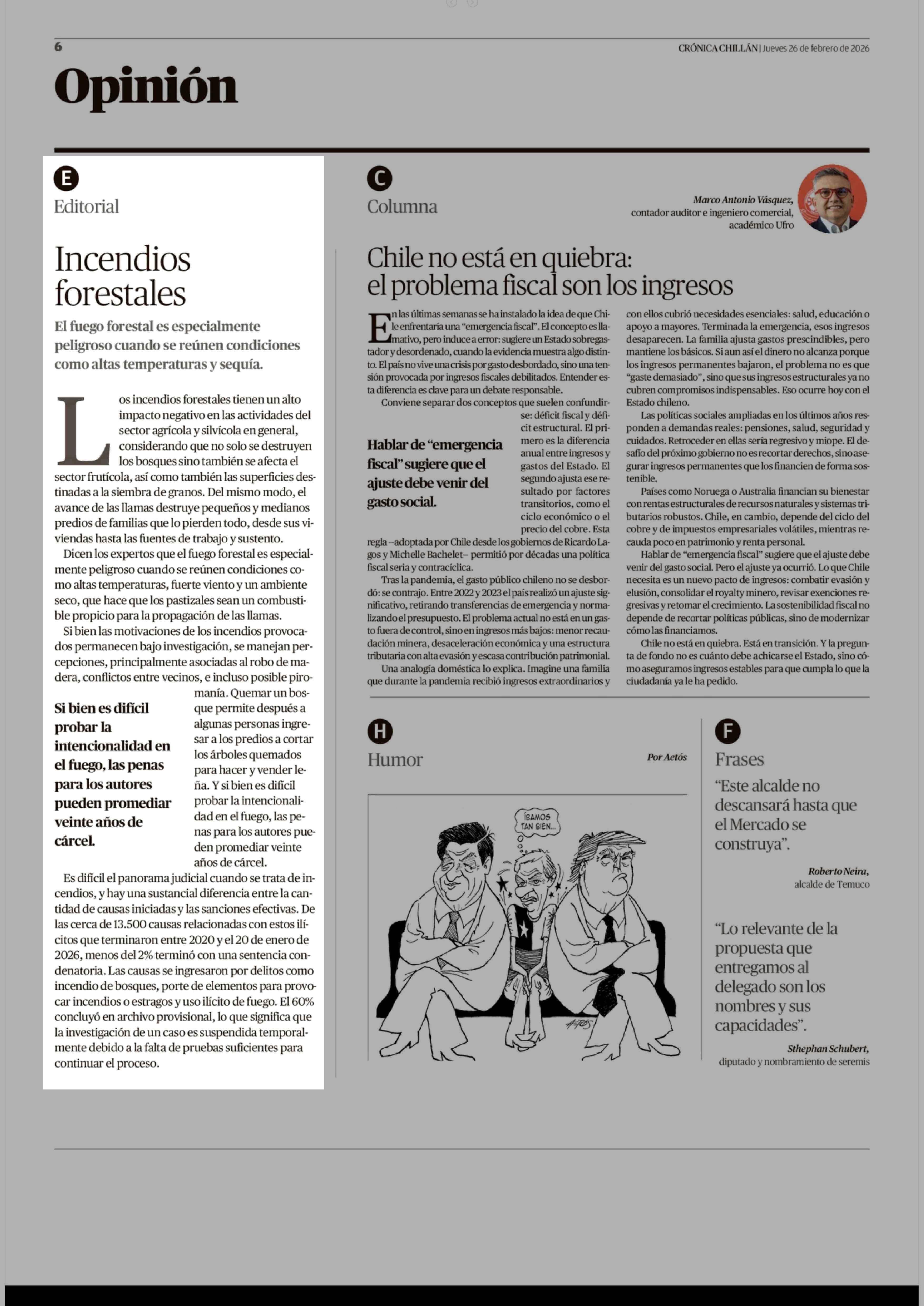 Fecha: 26-02-2026 Sector: Editorial Región: Región del Ñuble