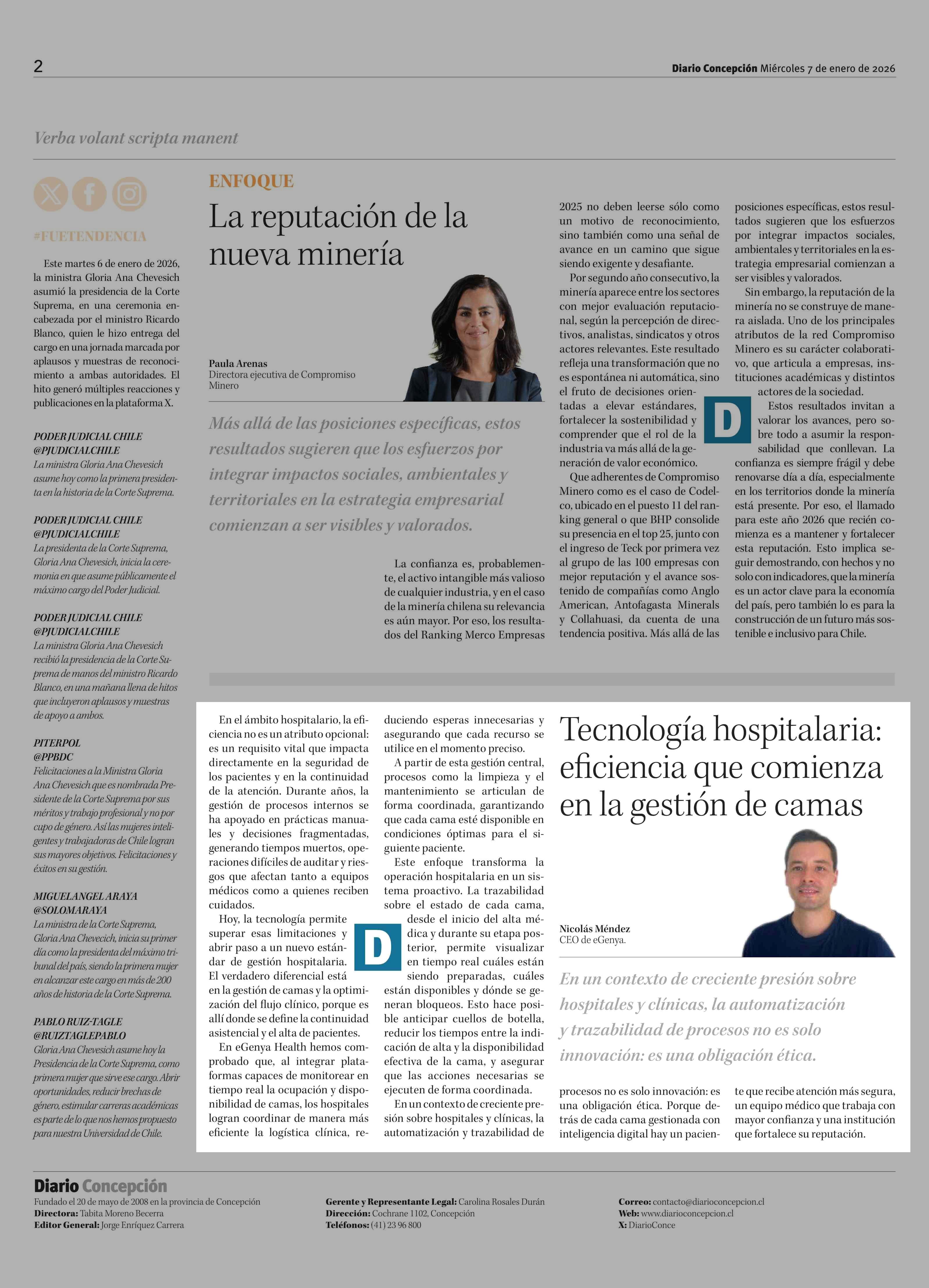 Columnas de Opinión: Tecnología hospitalaria: eficiencia que comienza en la gestión de camas 07-01-2026 Diario Concepción |