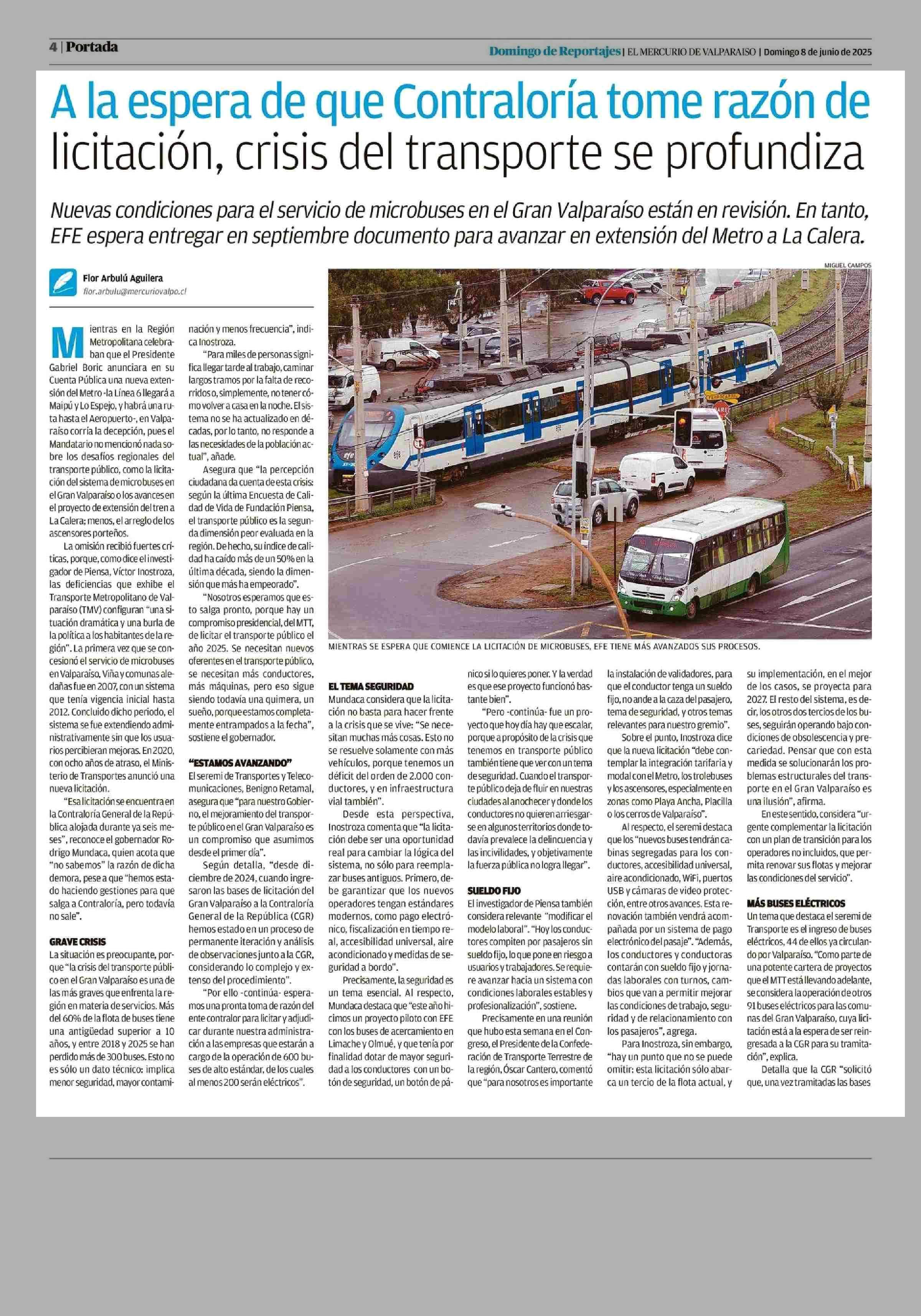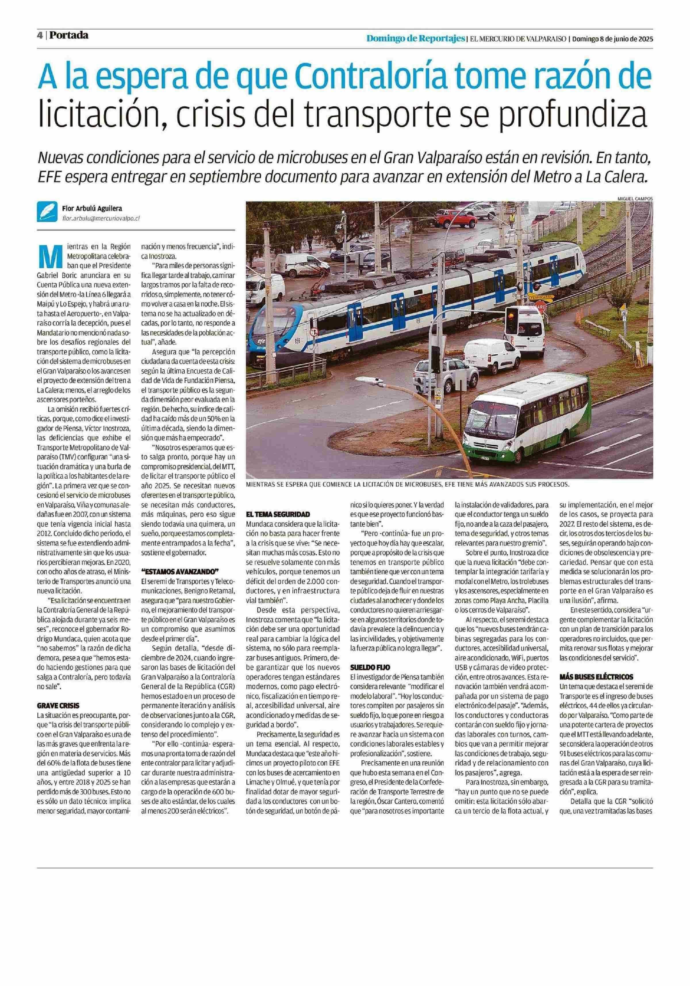 A la espera de que Contraloría tome razón de licitación, crisis del transporte se profundiza 08-06-2025 El Mercurio de Valparaíso |