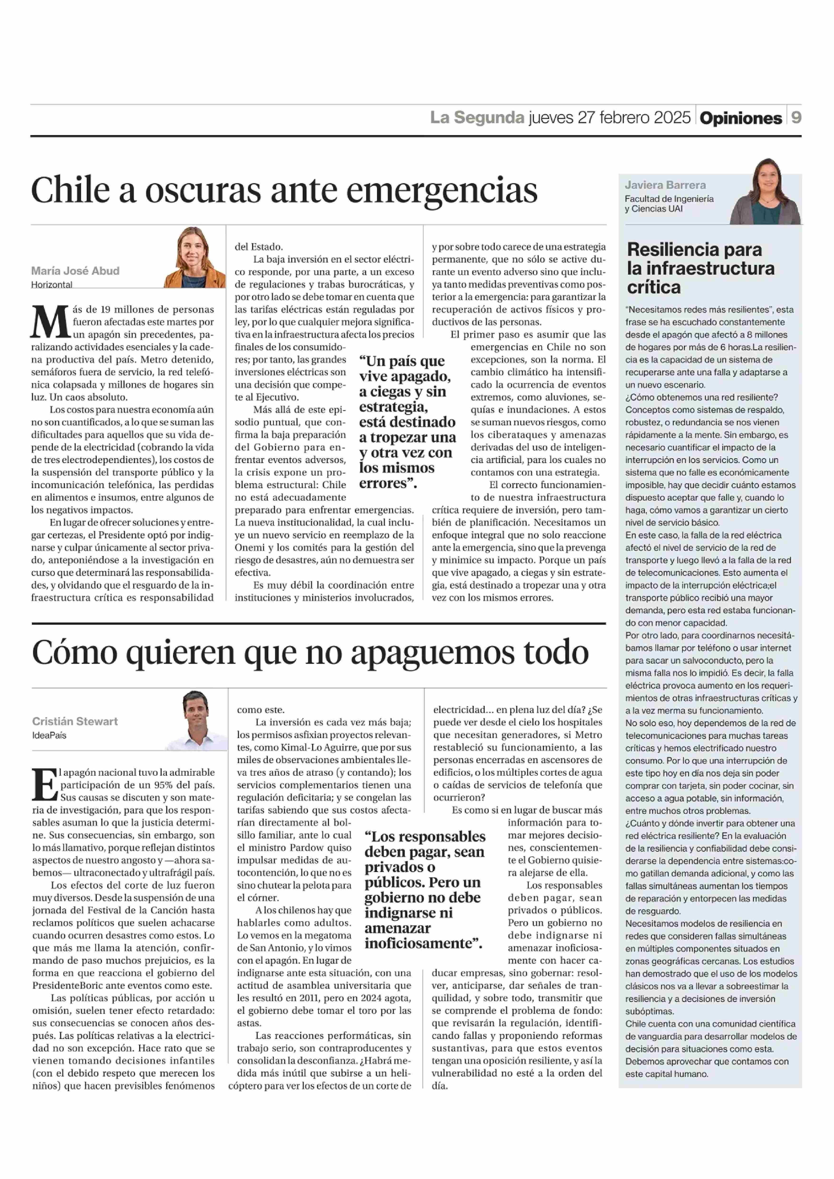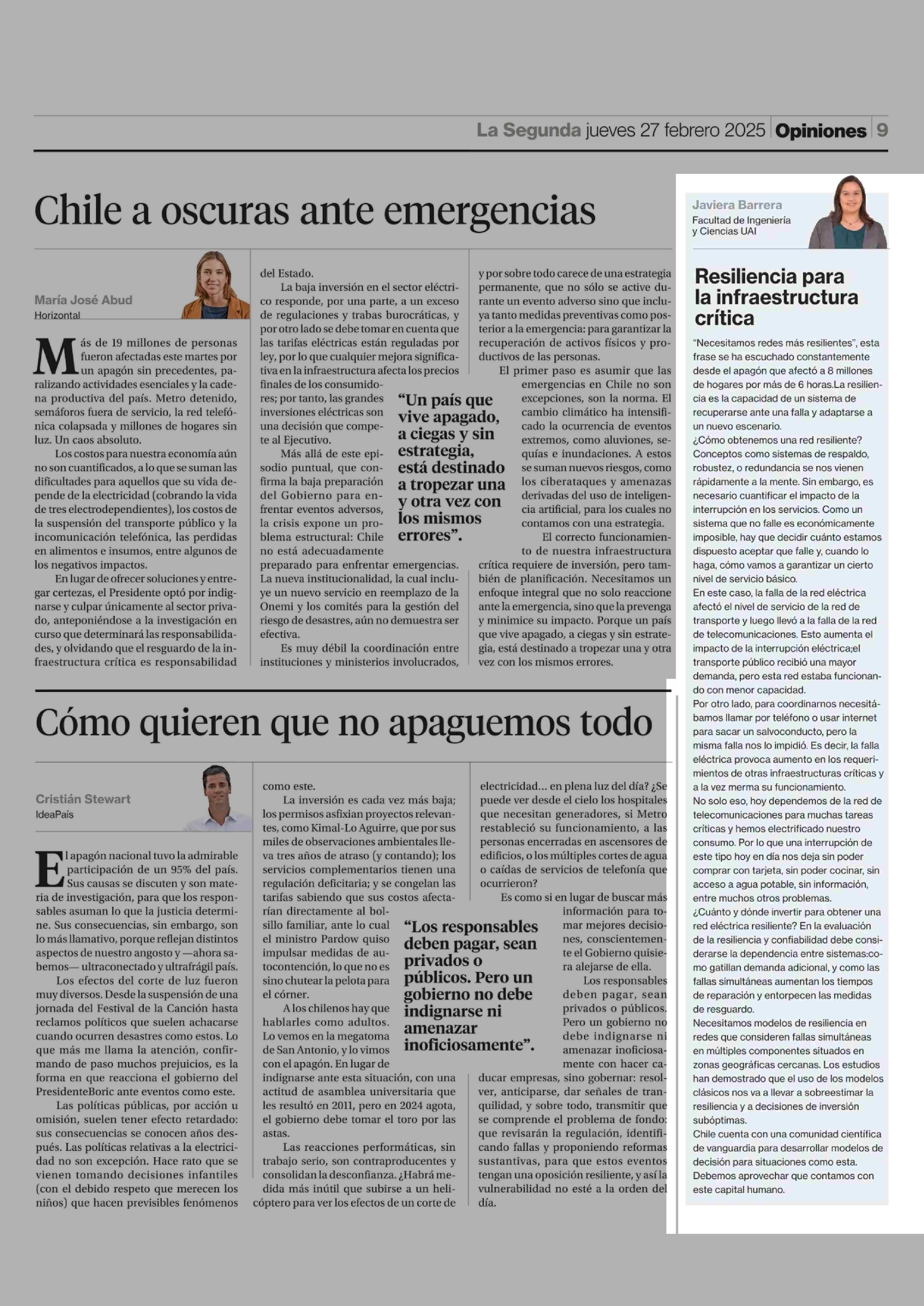 COLUMNAS DE OPINIÓN: Resiliencia para la infraestructura crítica 27-02-2025 La Segunda |