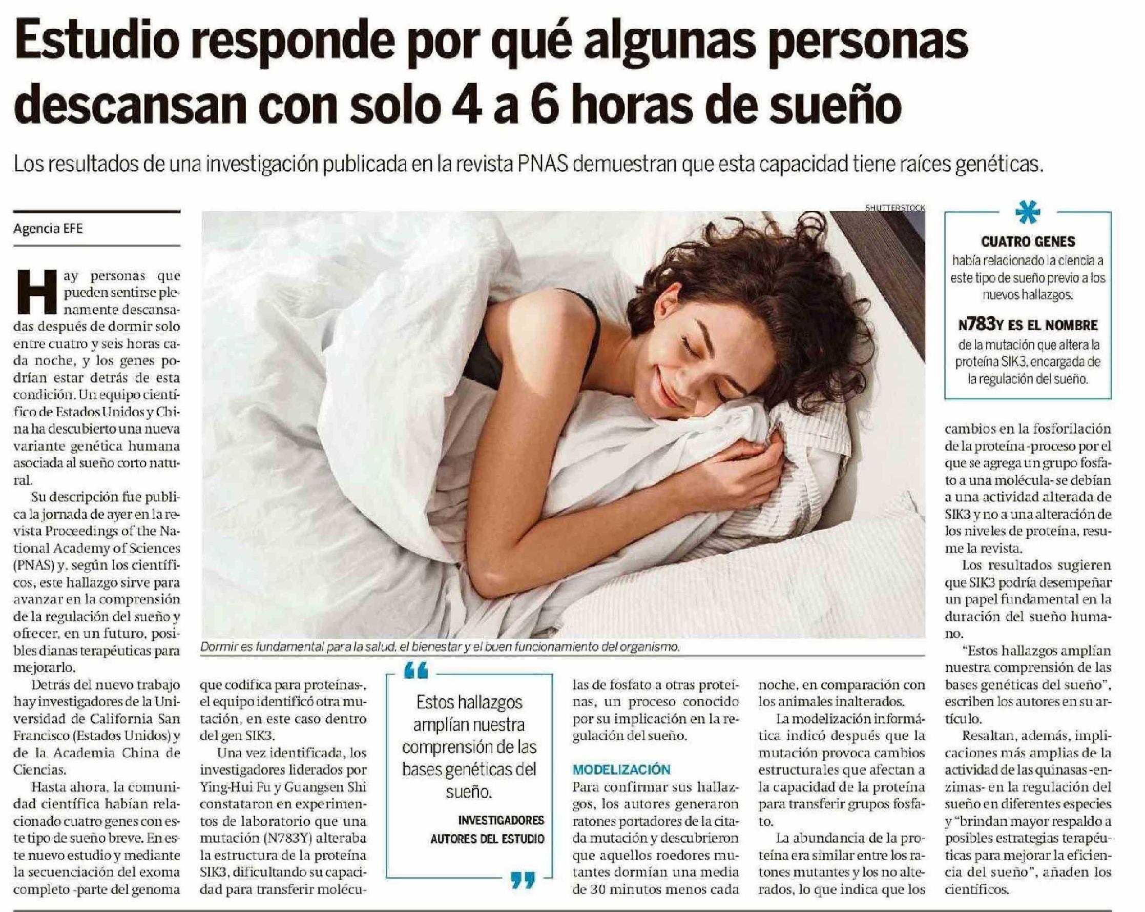| Título: | Estudio responde por qué algunas personas descansan con solo 4 a 6 horas de sueño |