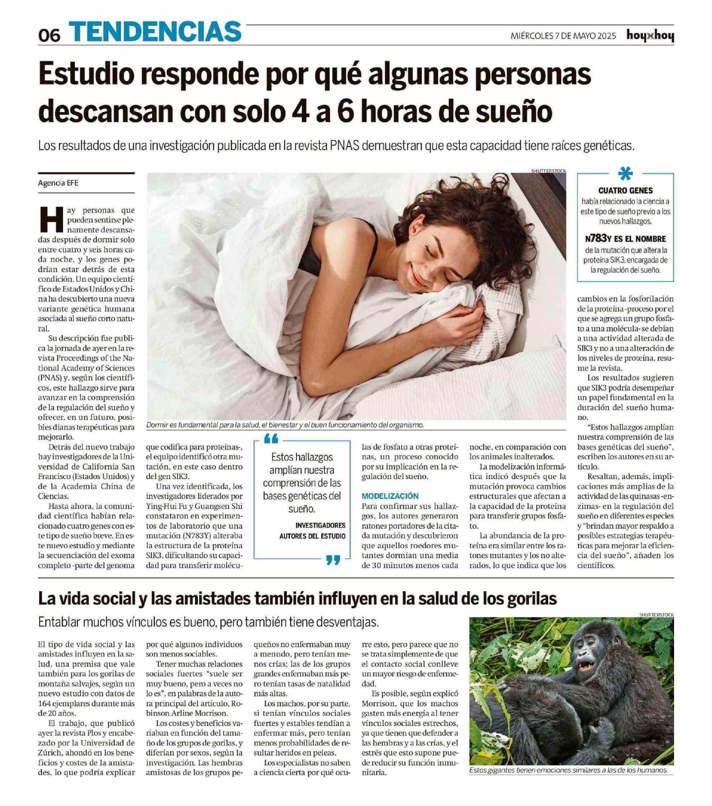 Estudio responde por qué algunas personas descansan con solo 4 a 6 horas de sueño 07-05-2025 Hoy x Hoy |