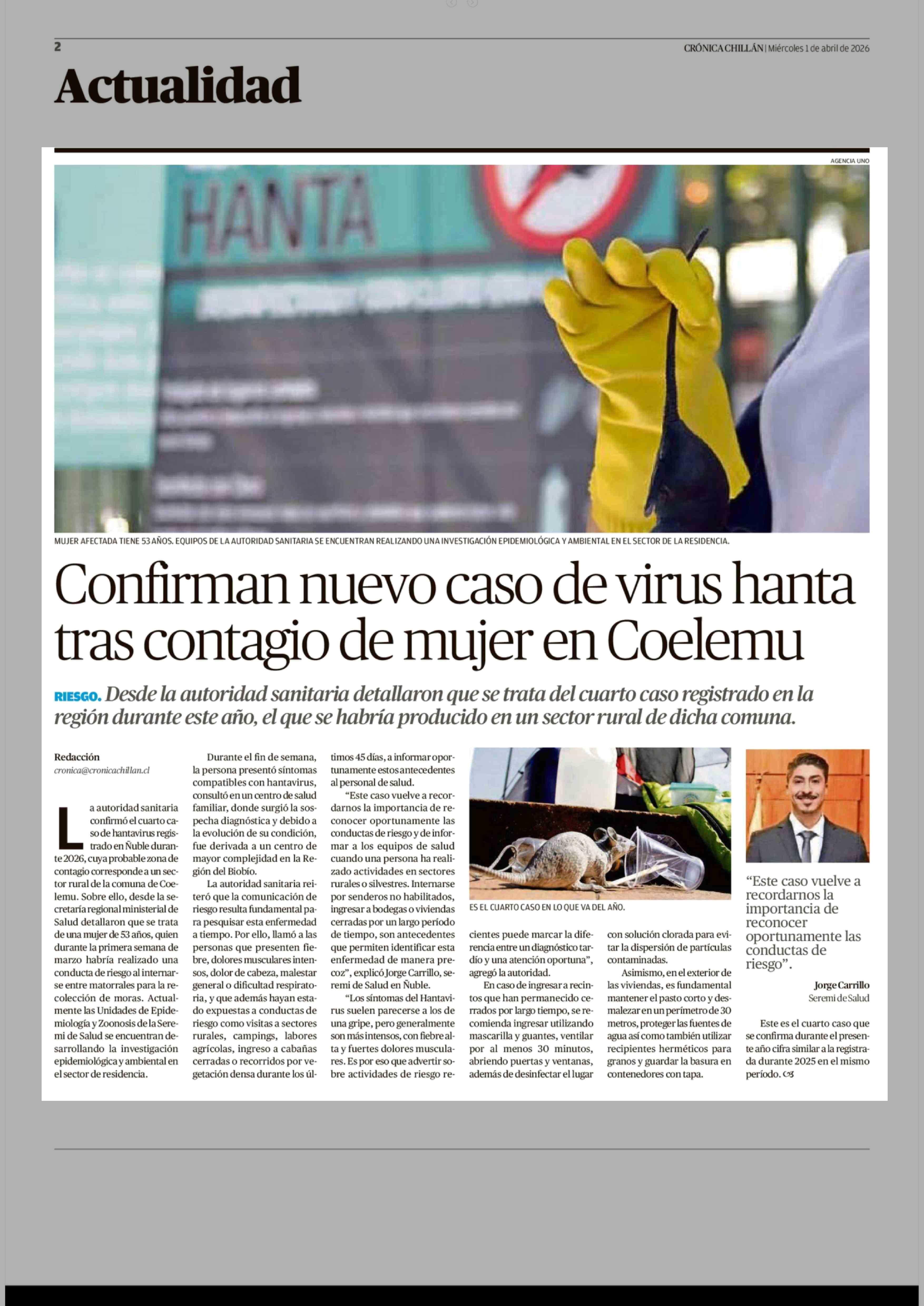 Título: Confirman nuevo caso de virus hanta tras contagio de mujer en Coelemu