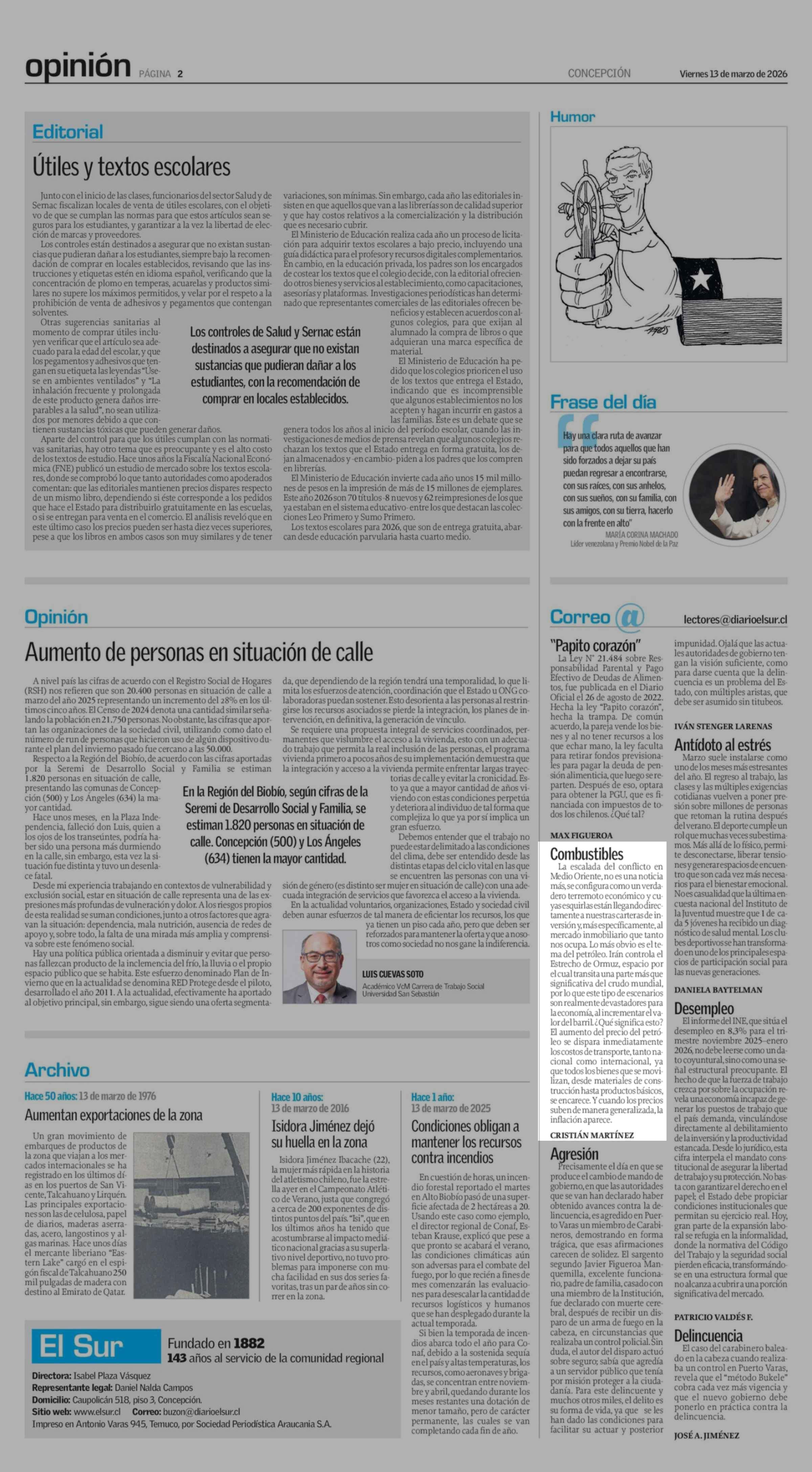 Fecha: 13-03-2026 Sector: Cartas Región: Región del Bío-Bío