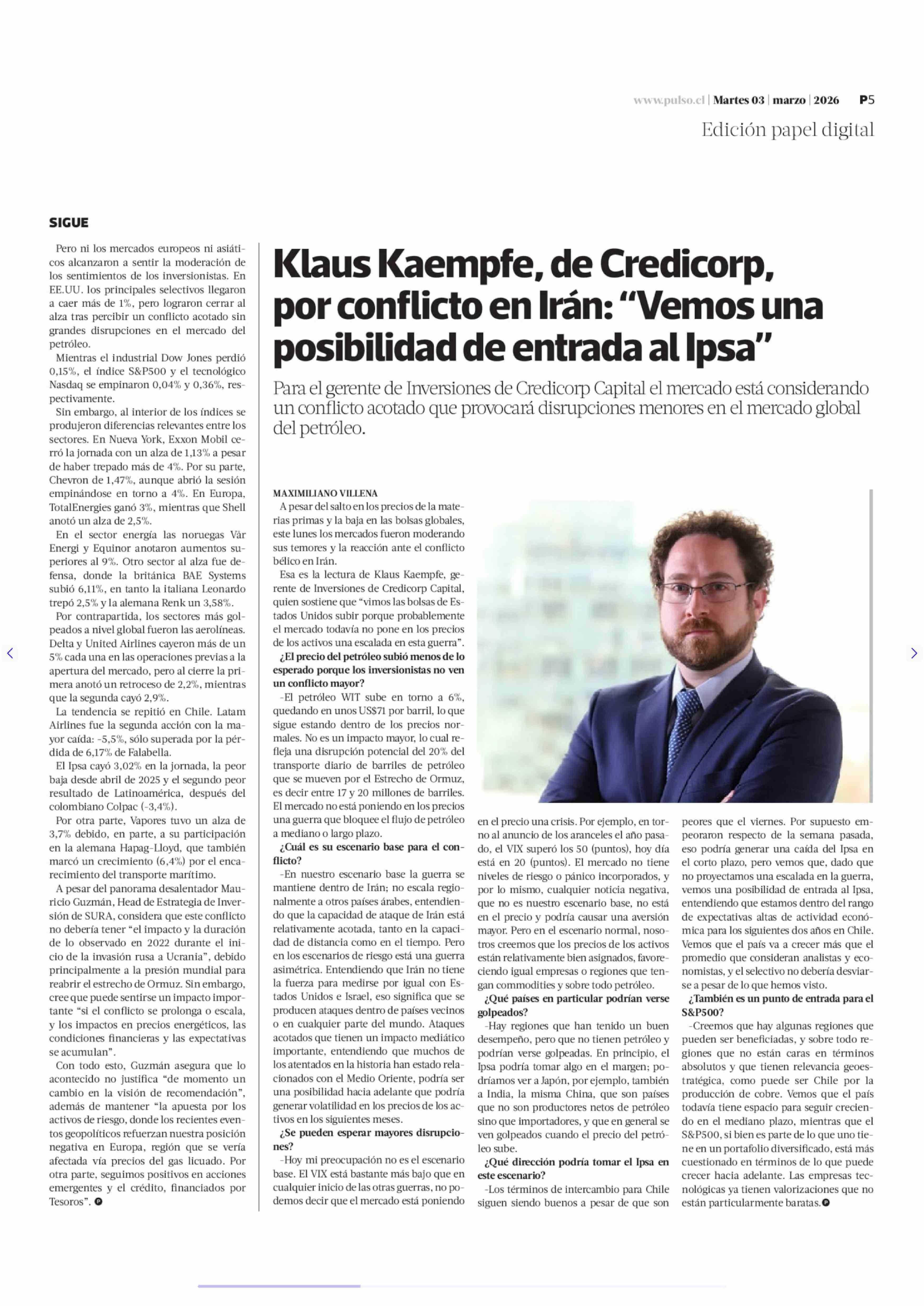 Título: Klaus Kaempfe, de Credicorp, por conflicto en Irán: "Vemos una posibilidad de entrada al Ipsa"
