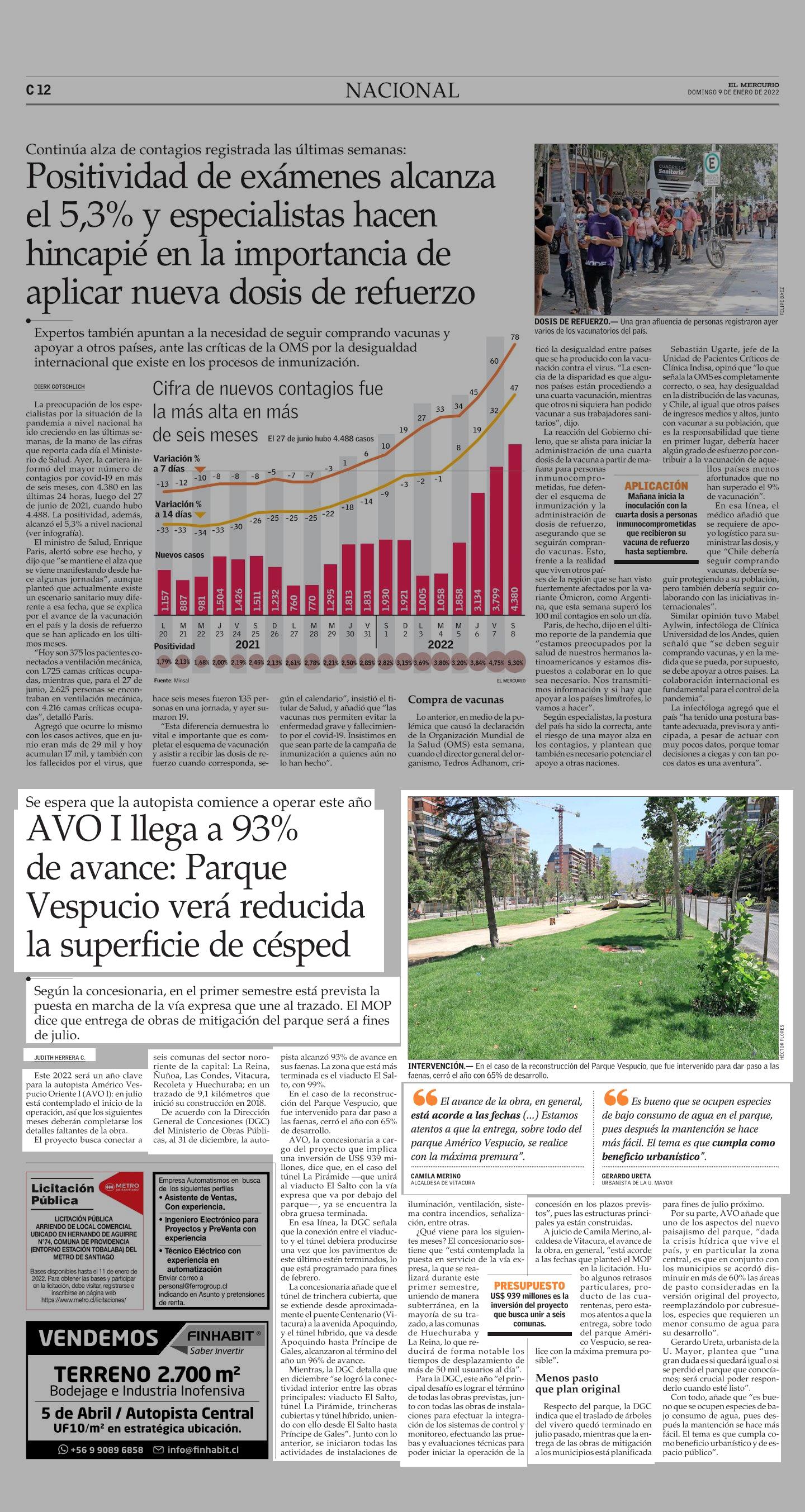 AVO 1 llega a 93% de avance: Parque Vespucio verá reducida la superficie de césped 09-01-2022 El Mercurio |