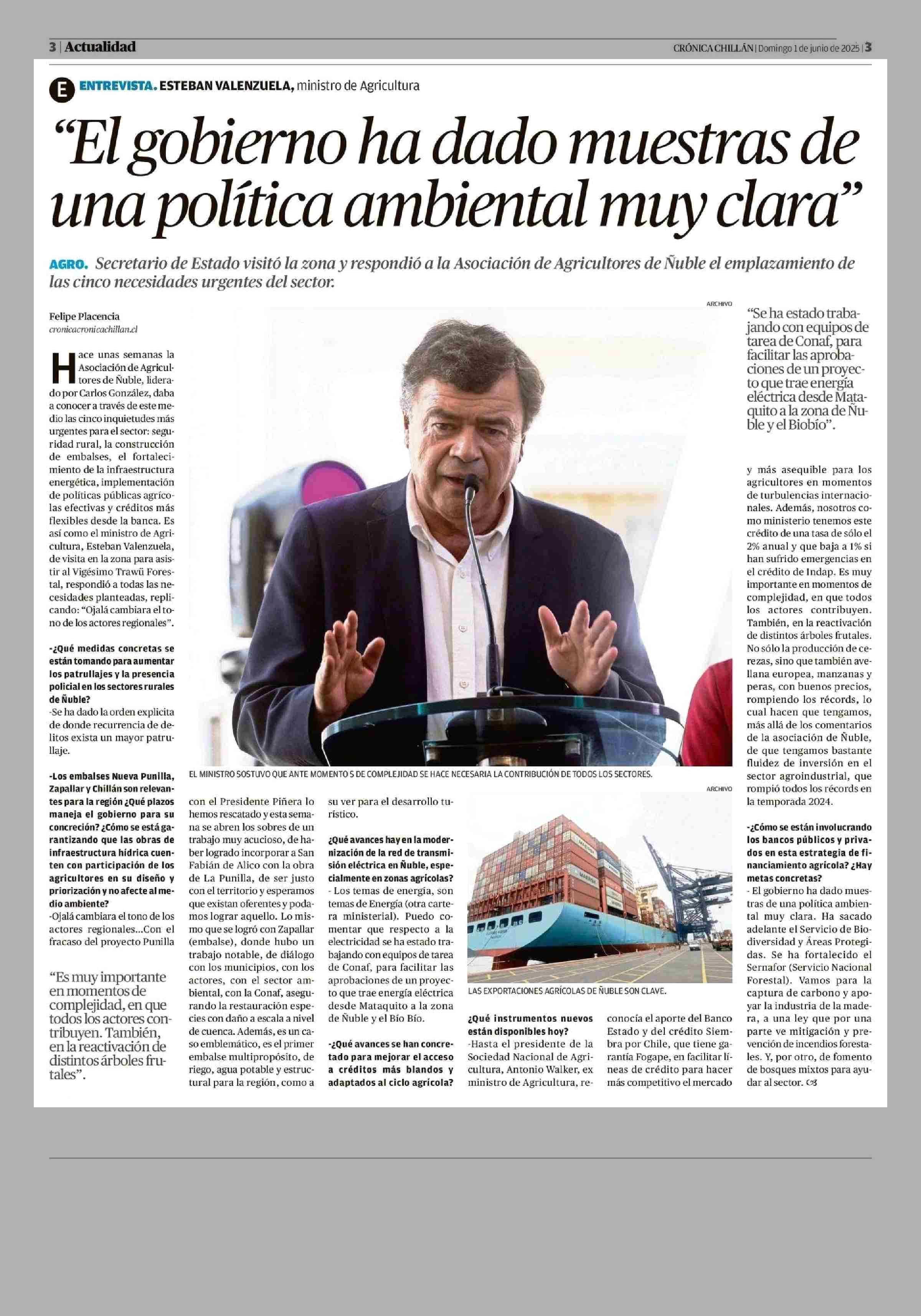 “El gobierno ha dado muestras de una política ambiental muy clara” 01-06-2025 Crónica de Chillán |