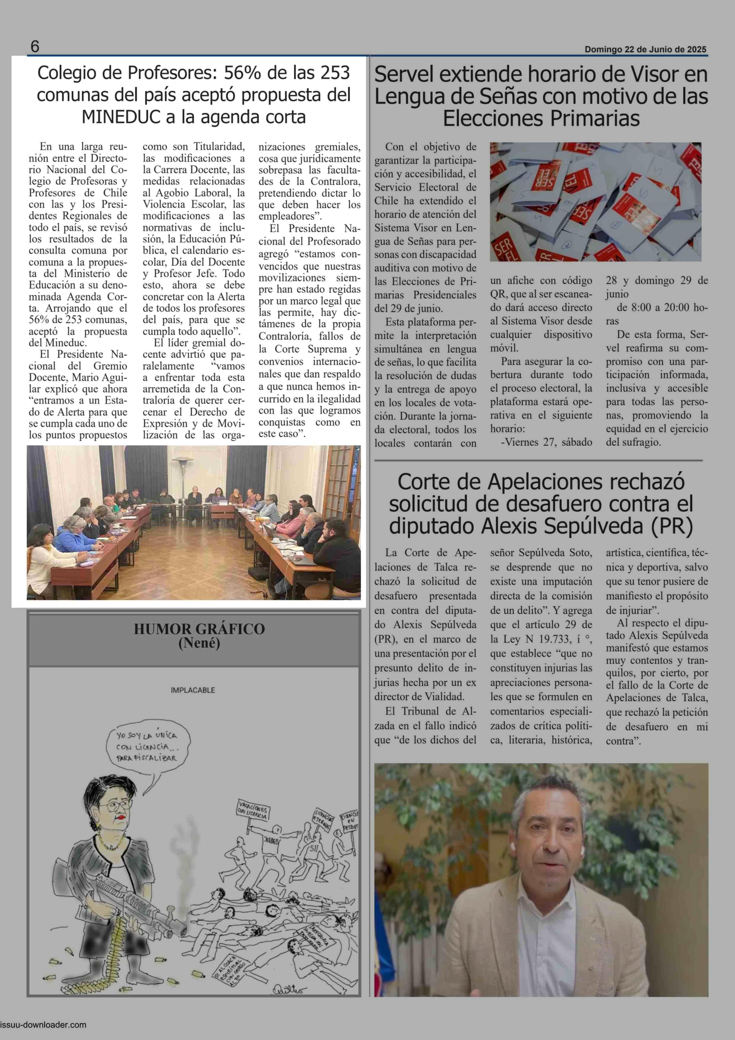 | Fecha: | 22-06-2025 | Sector: | Noticia general | Región: | Región del Maule |