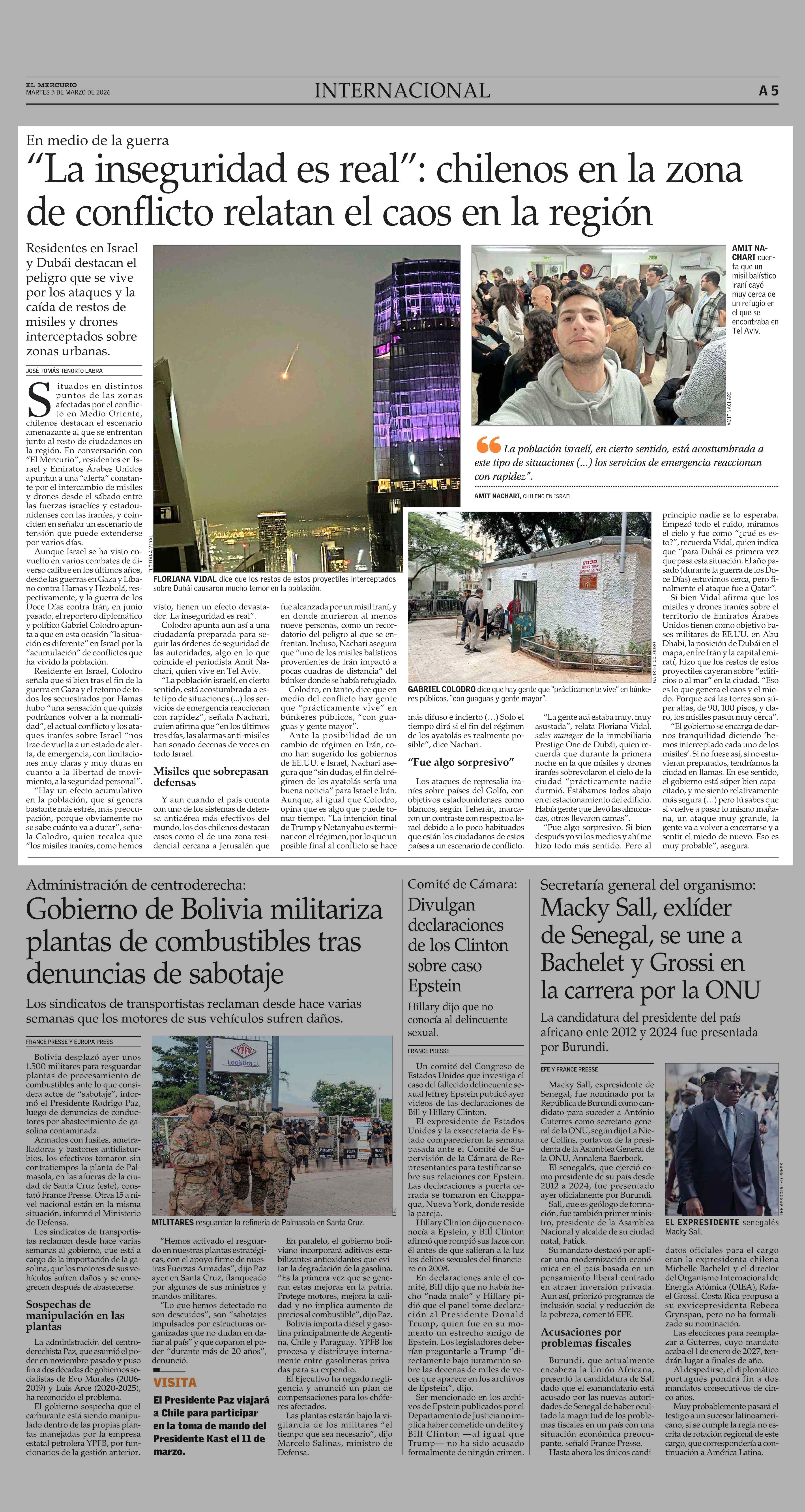 “La inseguridad es real”: chilenos en la zona de conflicto relatan el caos en la región 03-03-2026 El Mercurio |