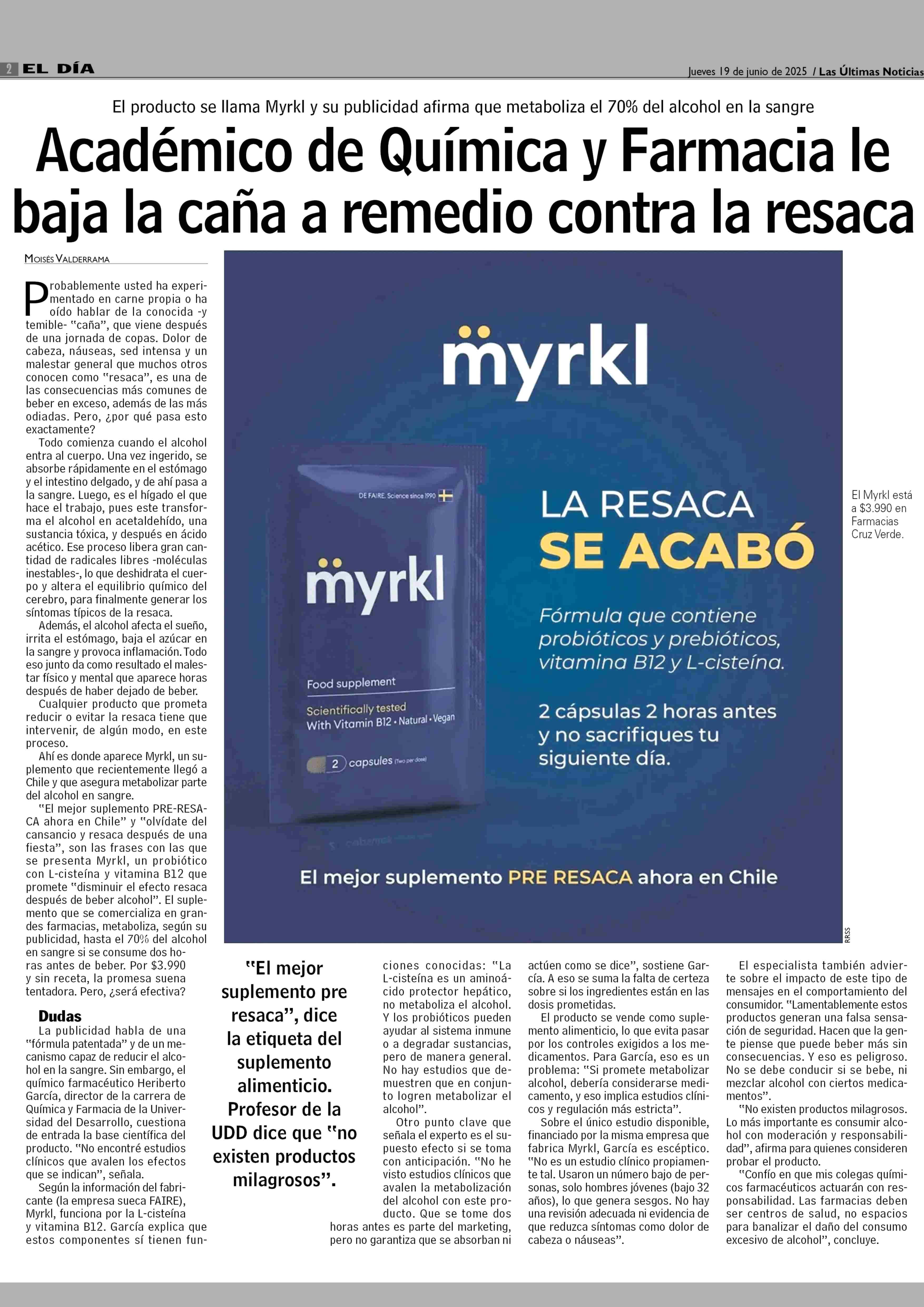 Académico de Química y Farmacia le baja la caña a remedio contra la resaca 19-06-2025 Las Últimas Noticias |