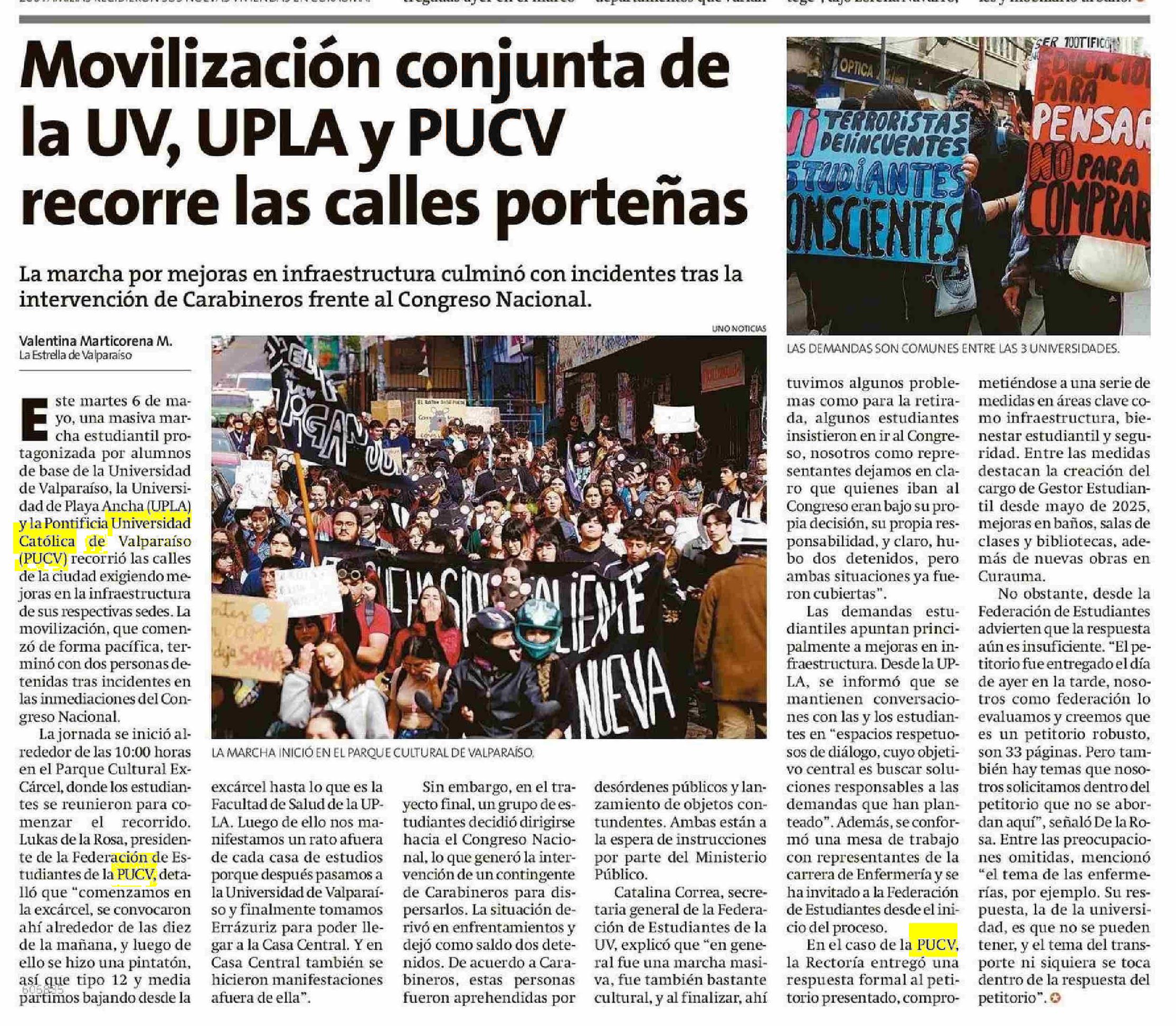 Título: Movilización conjunta de Mm |""Í la UV, UPLA y PUCV recorre las calles porteñas