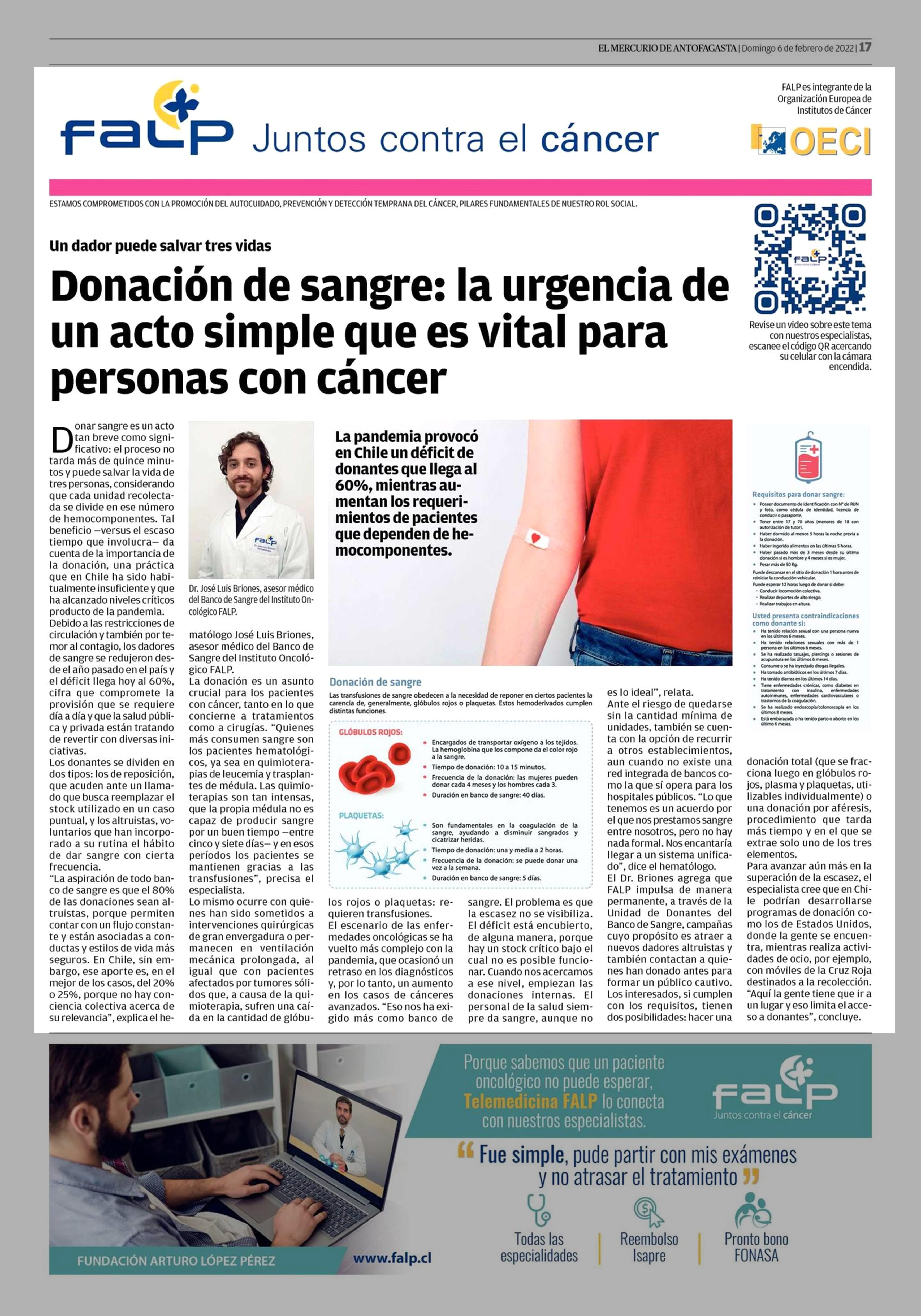 Título: Donación de sangre: la urgencia de un acto simple que es vital para personas con cáncer