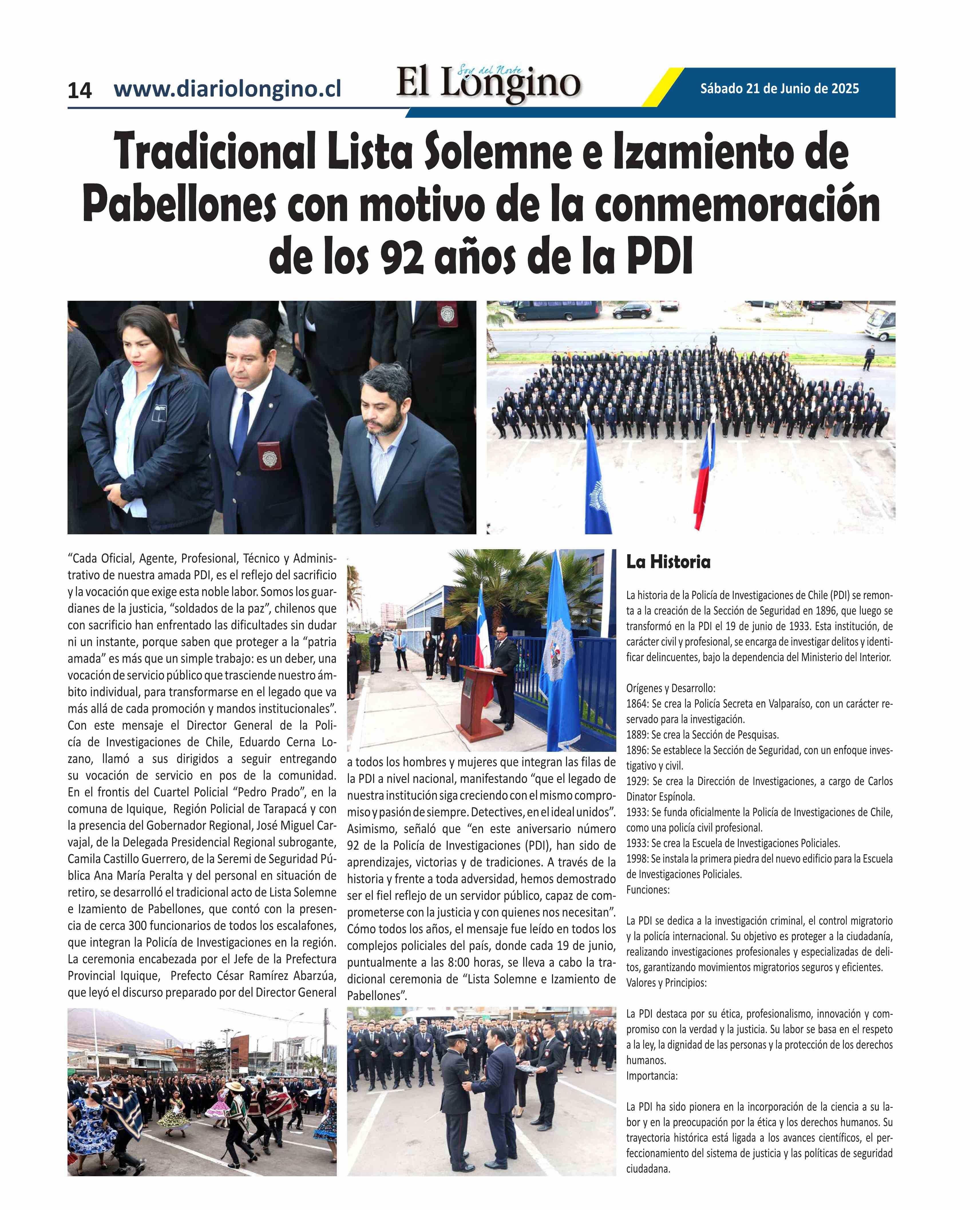 | Fecha: | 21-06-2025 | Sector: | Noticia general | Región: | Región de Tarapacá |