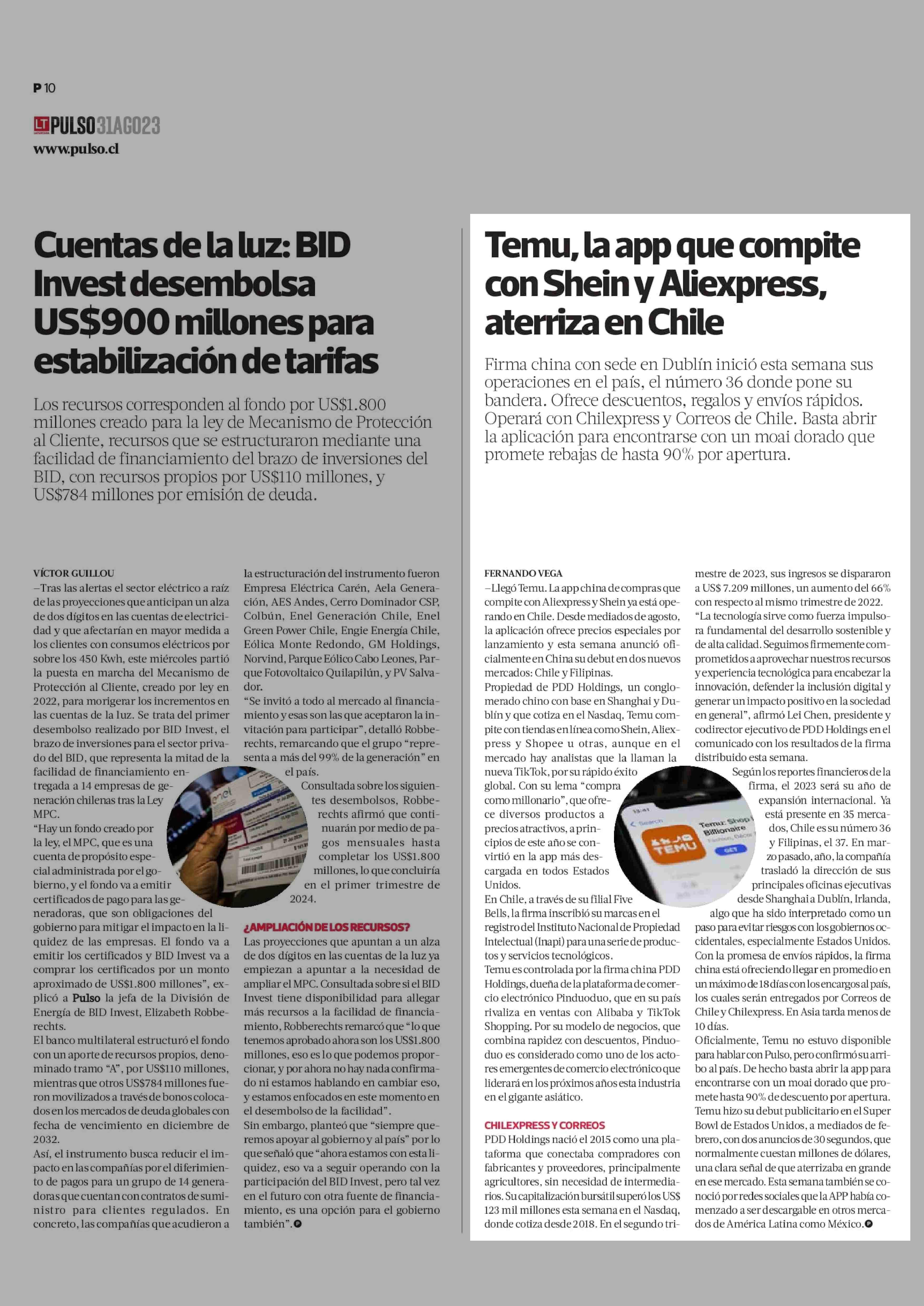 Temu, la app que compite con Shein y Aliexpress, aterriza en Chile 31-08-2023 La Tercera |