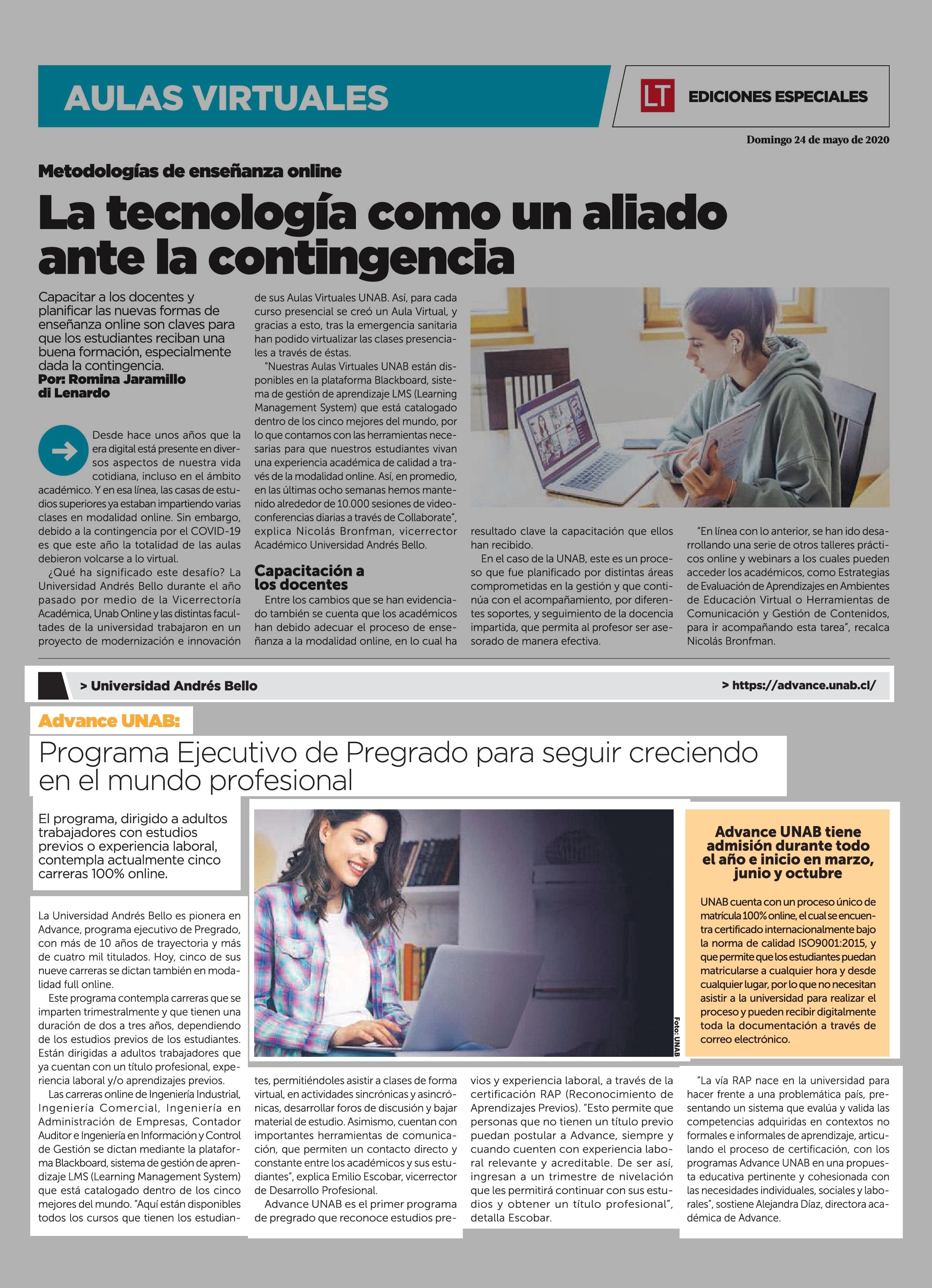 Programa Ejecutivo de Pregrado para seguir creciendo en el mundo profesional 24-05-2020 La Tercera |