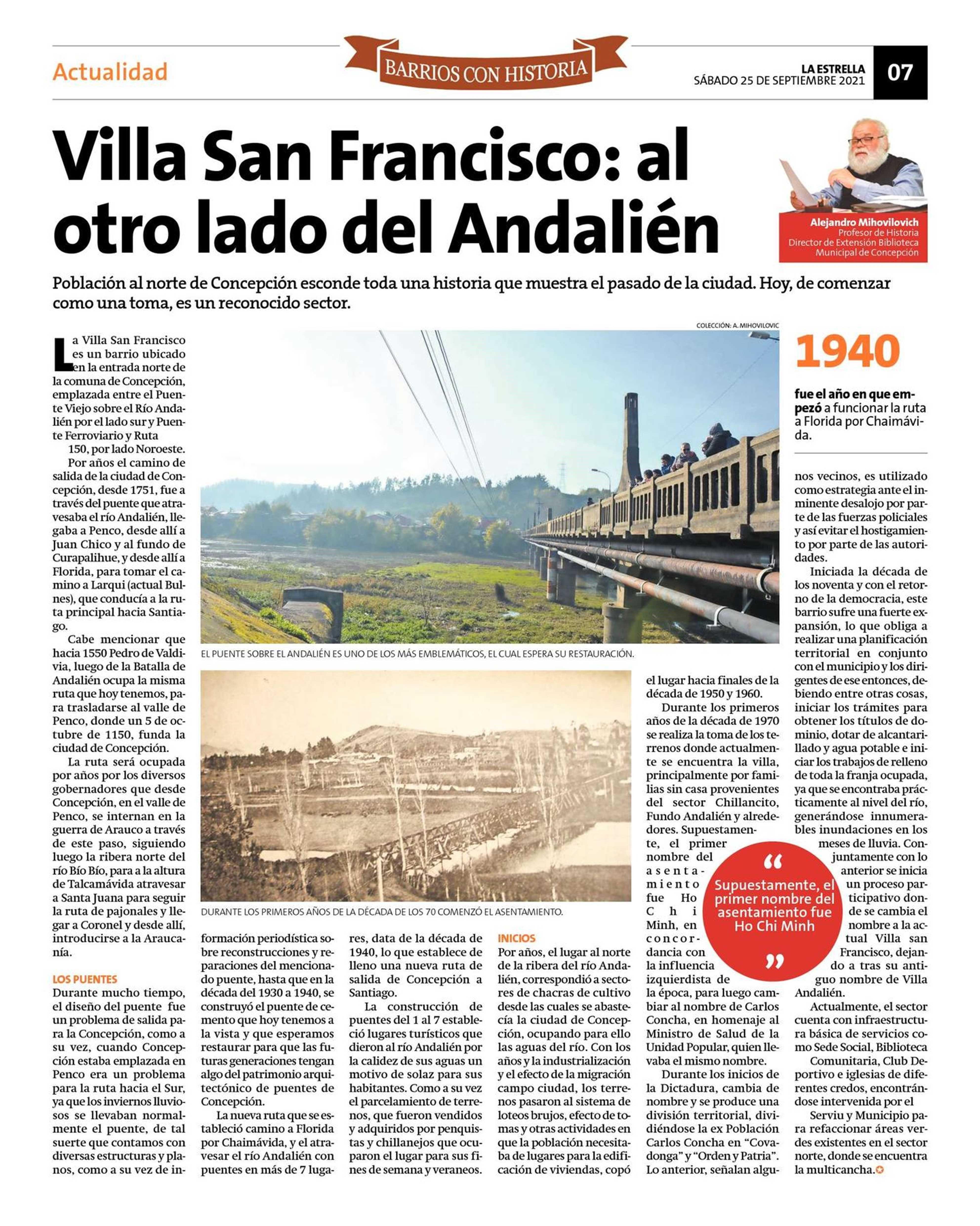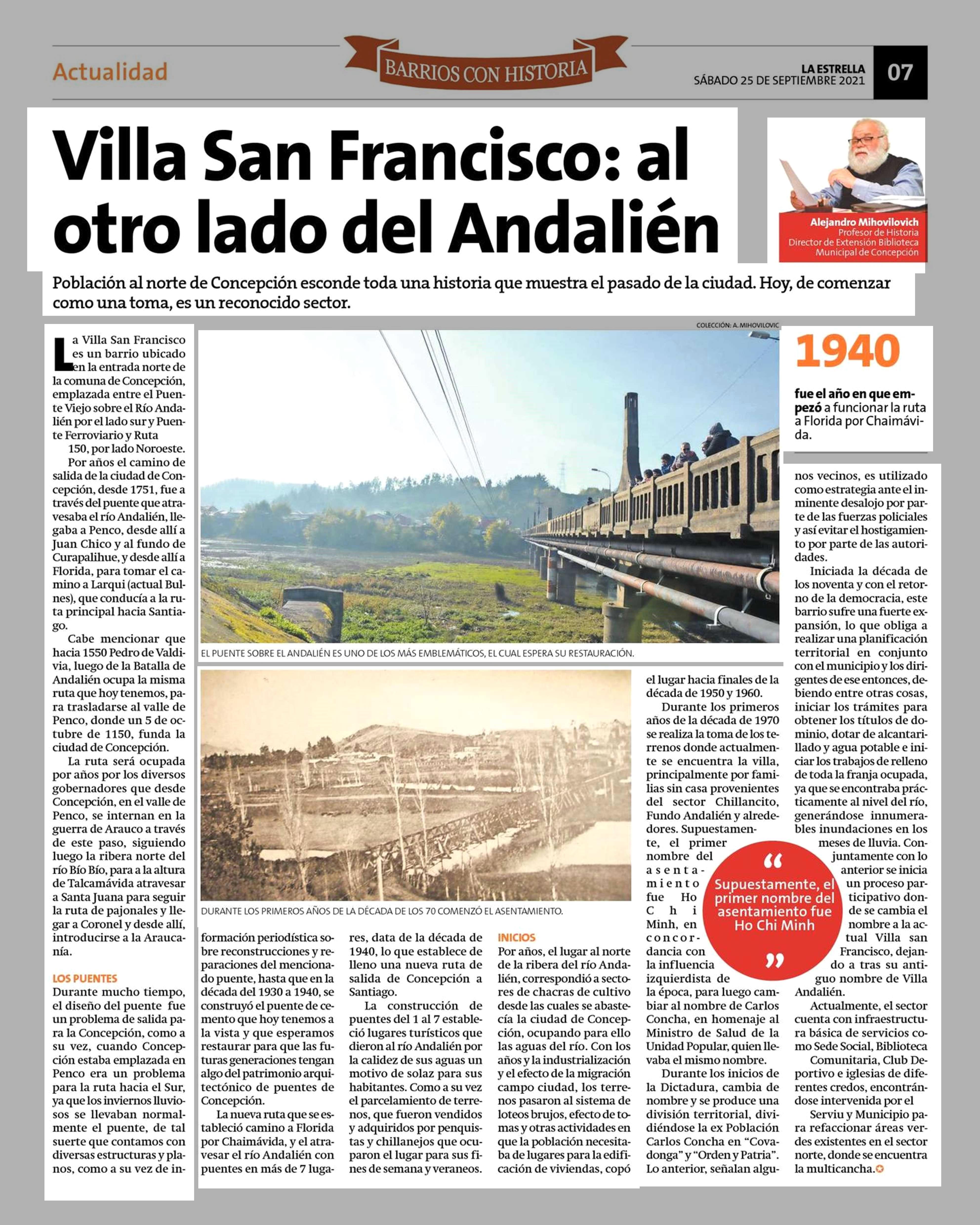 Villa San Francisco: al otro lado del Andalién 25-09-2021 La Estrella de Concepción |