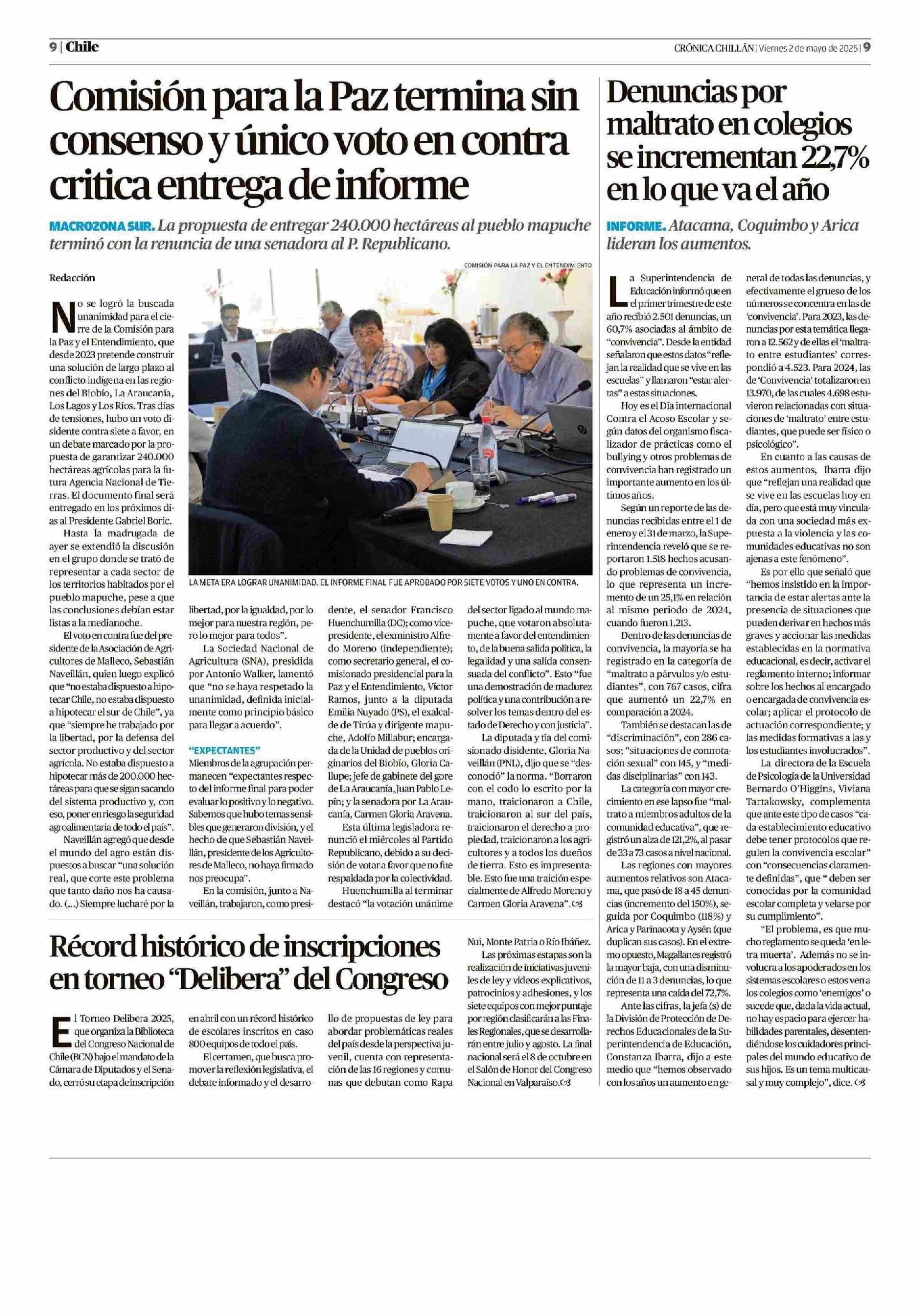 Denuncias por maltrato en colegios se incrementan 22,7% en lo que va el año 02-05-2025 Crónica de Chillán |