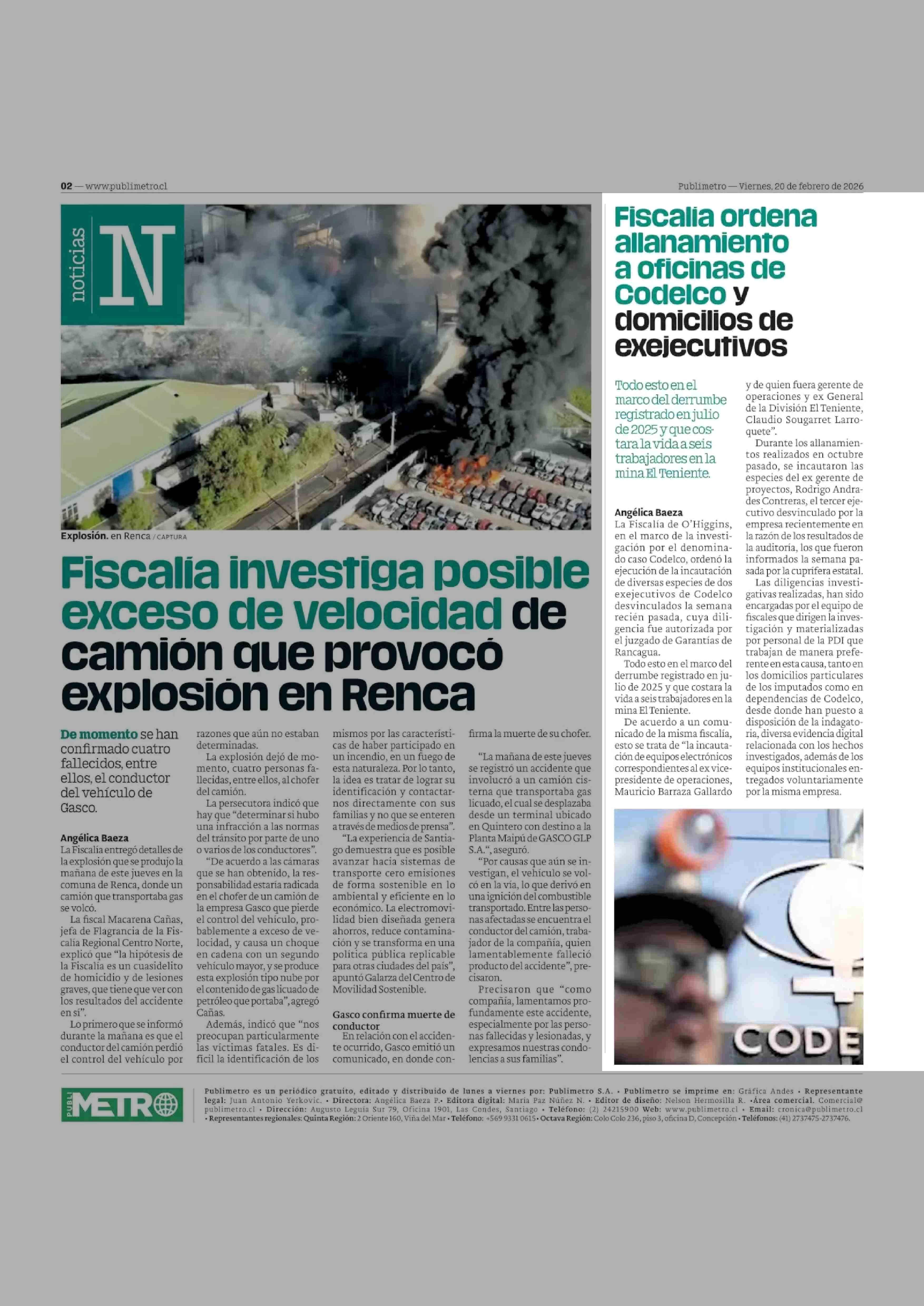 Fiscalia ordena allanamiento a oficinas de Codelco y domicilios de exejecutfivos 20-02-2026 Publimetro |
