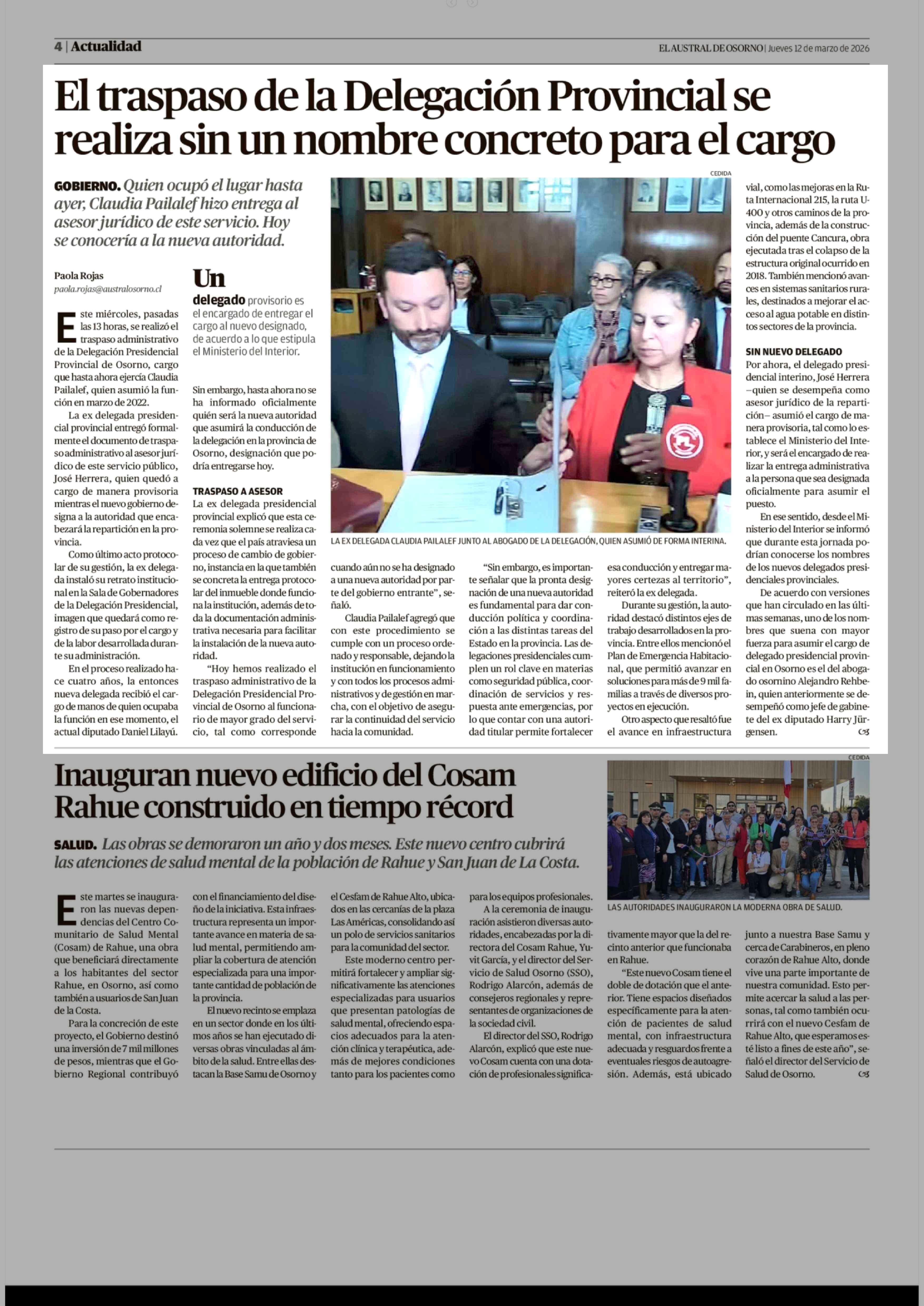 Fuente: El Austral de Osorno (El Austral de Osorno) Página(s): 4