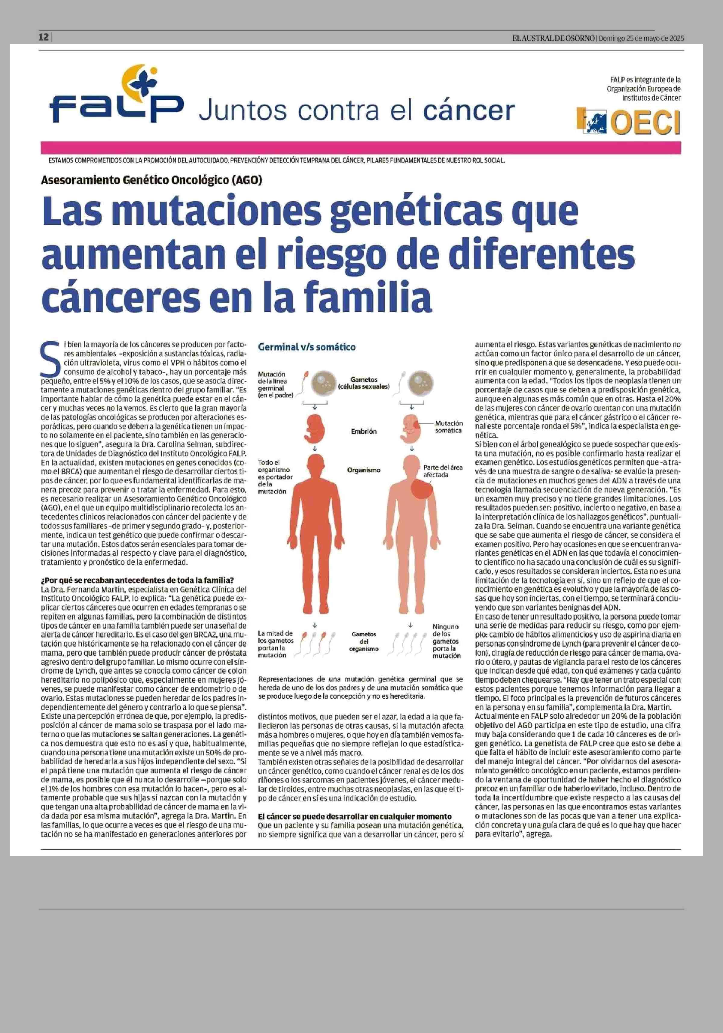 Título: Las mutaciones genéticas que aumentan el riesgo de diferentes cánceres en la familia