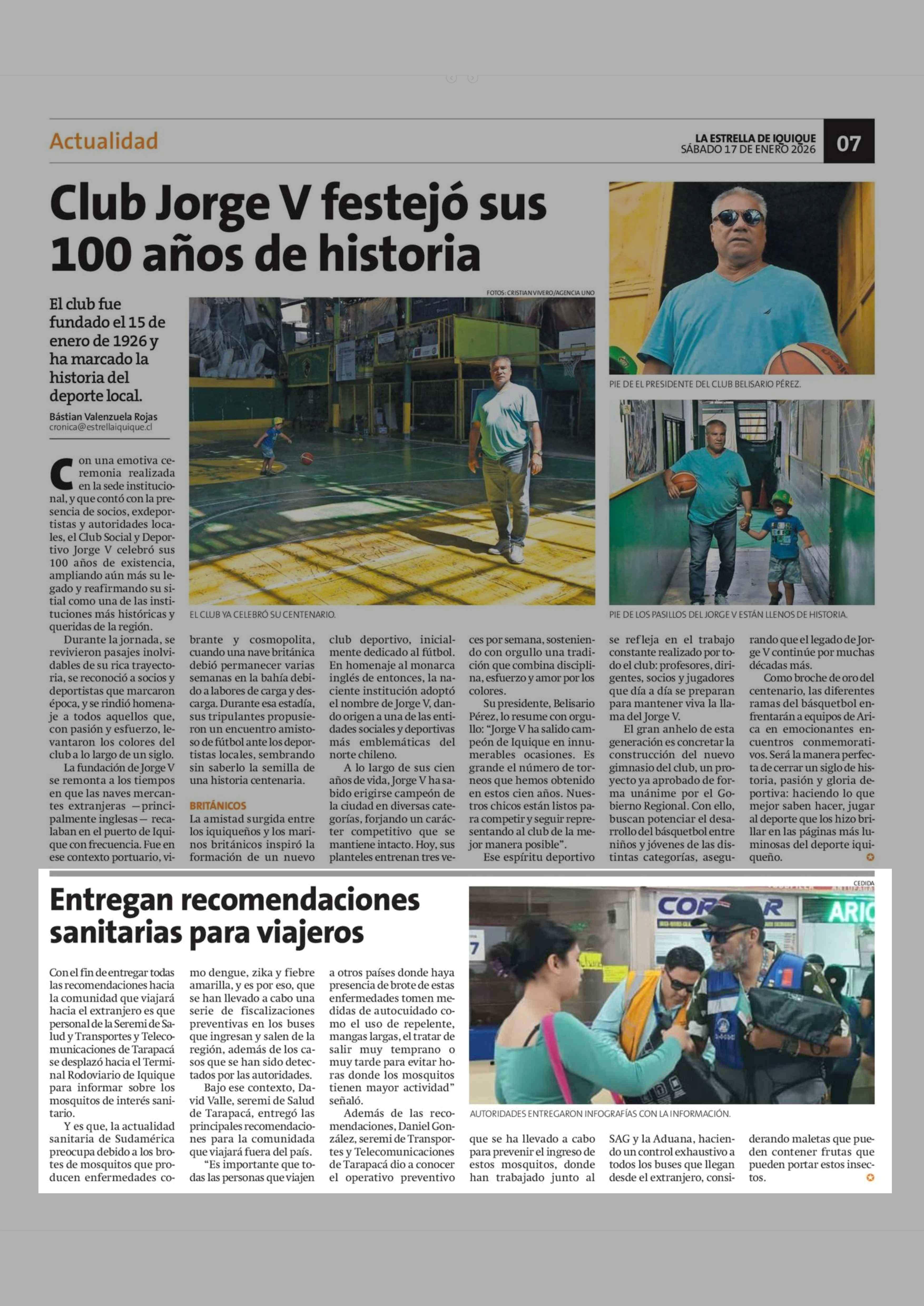Entregan recomendaciones sanitarias para viajeros 17-01-2026 La Estrella de Iquique |