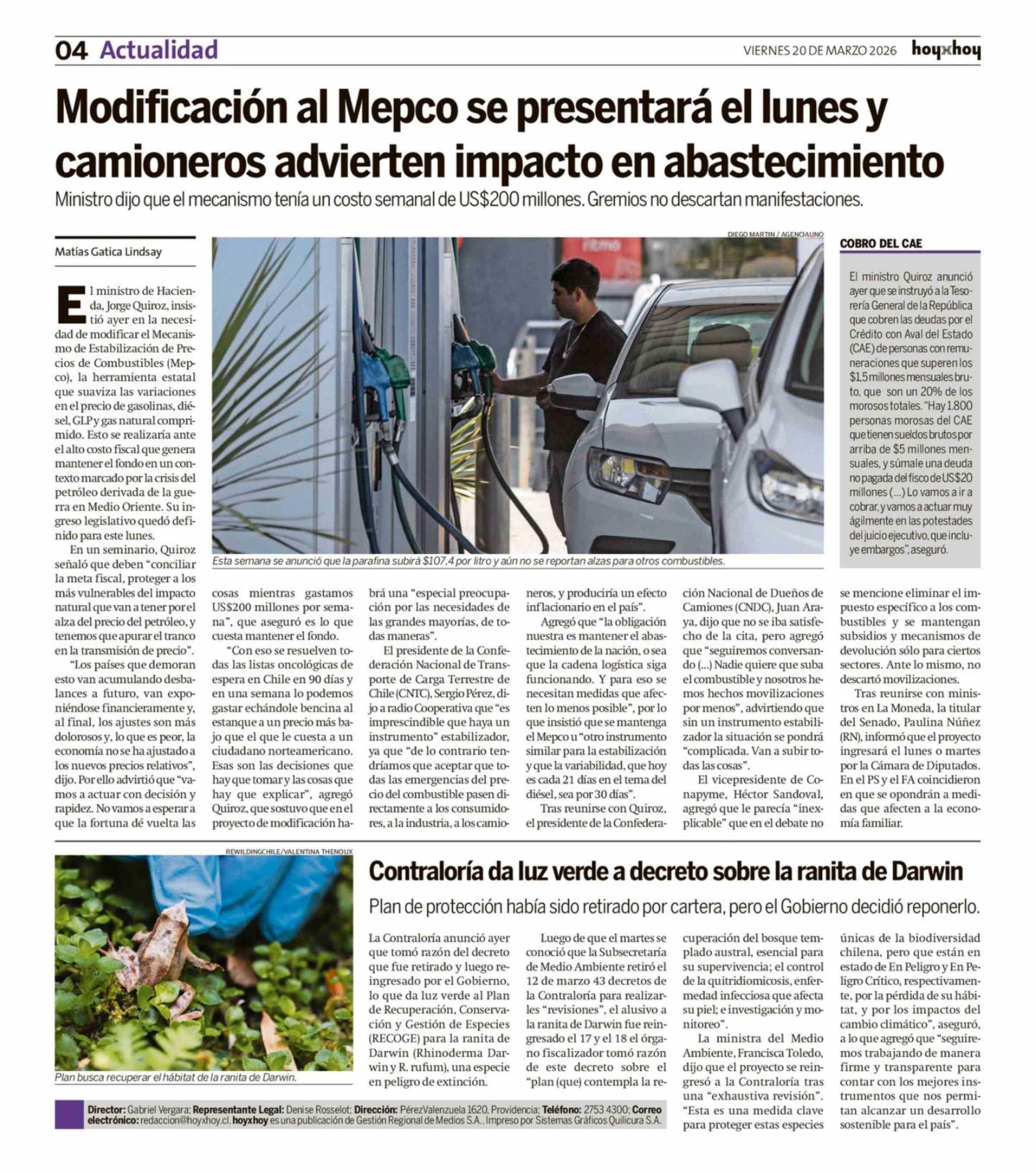 Modificación al Mepco se presentará el lunes y camioneros advierten impacto en abastecimiento 20-03-2026 Hoy x Hoy |