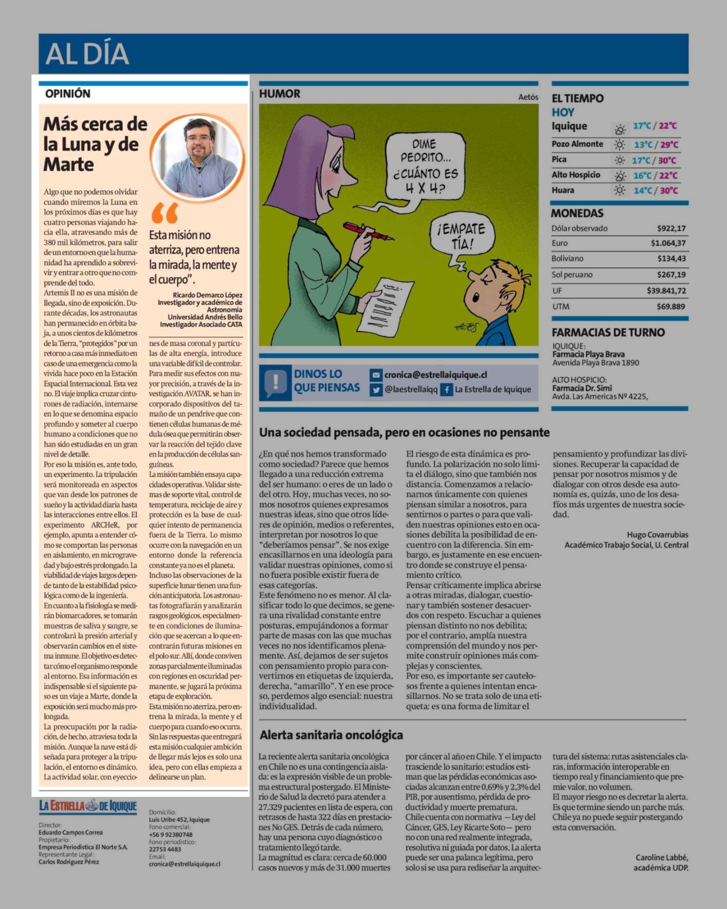 Fecha: 05-04-2026 Sector: Columnas de Opinión Región: Región de Tarapacá