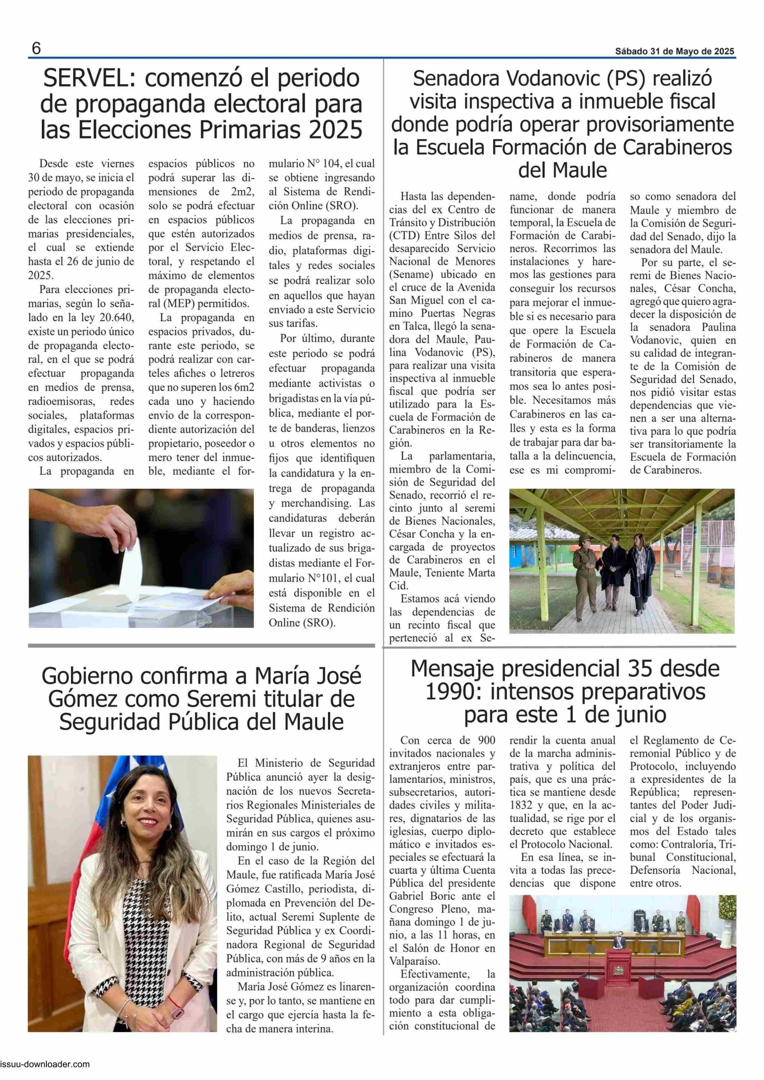 | Fecha: | 31-05-2025 | Sector: | Noticia general | Región: | Región del Maule |