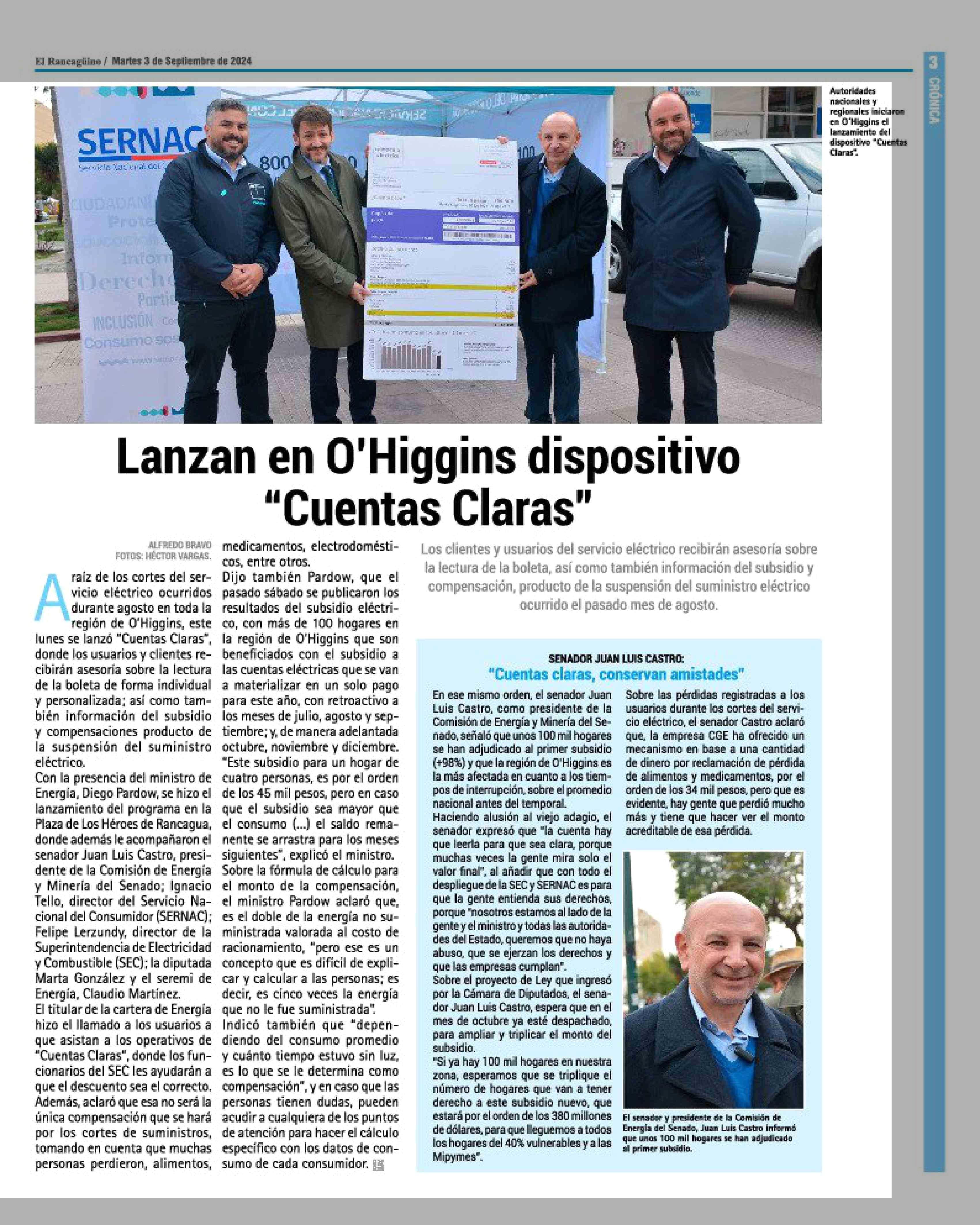 Lanzan en O'Higgins dispositivo “Cuentas Claras” 03-09-2024 El Rancagüino |