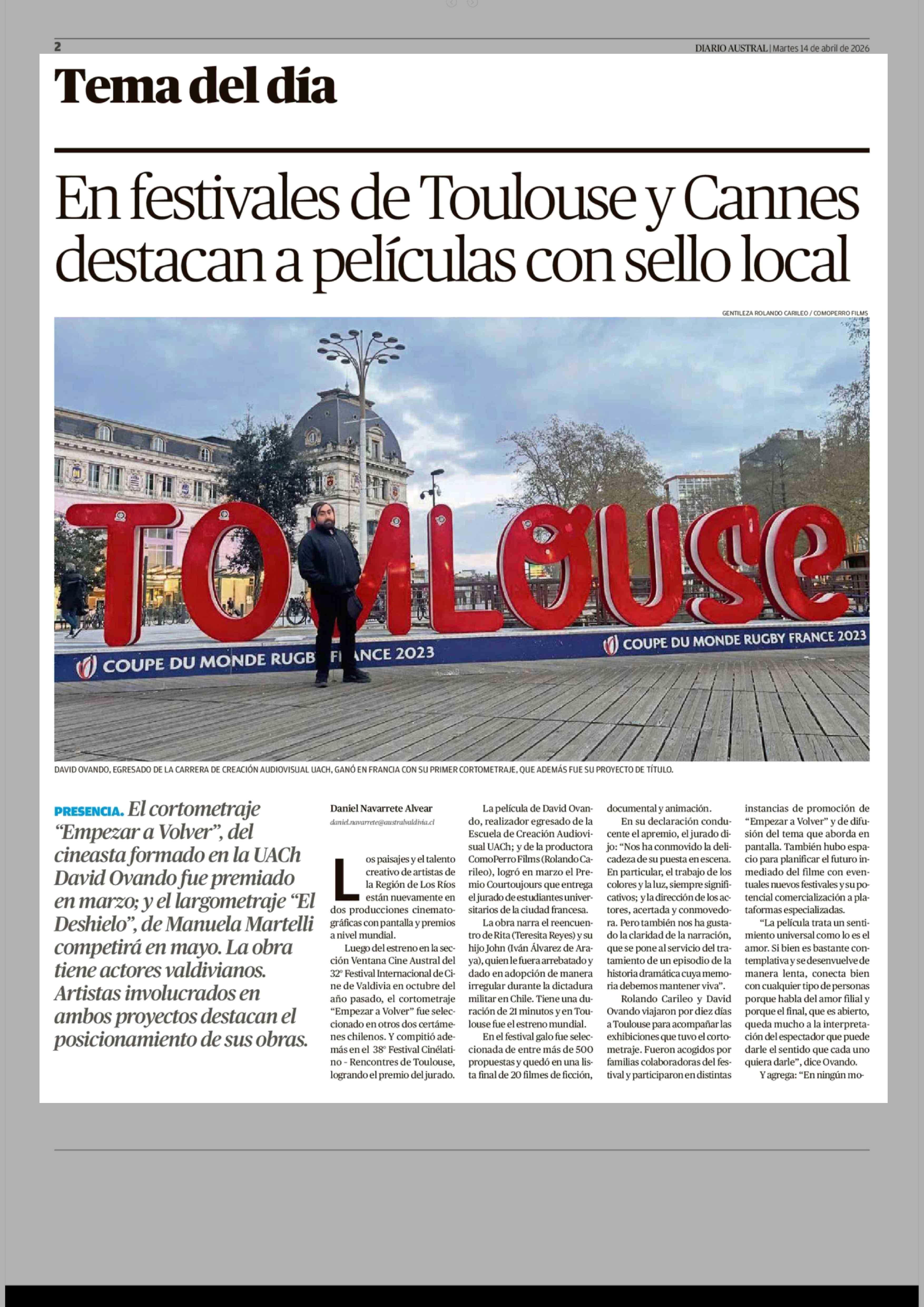 Título: En festivales de Toulouse y Cannes destacan a películas con sello local