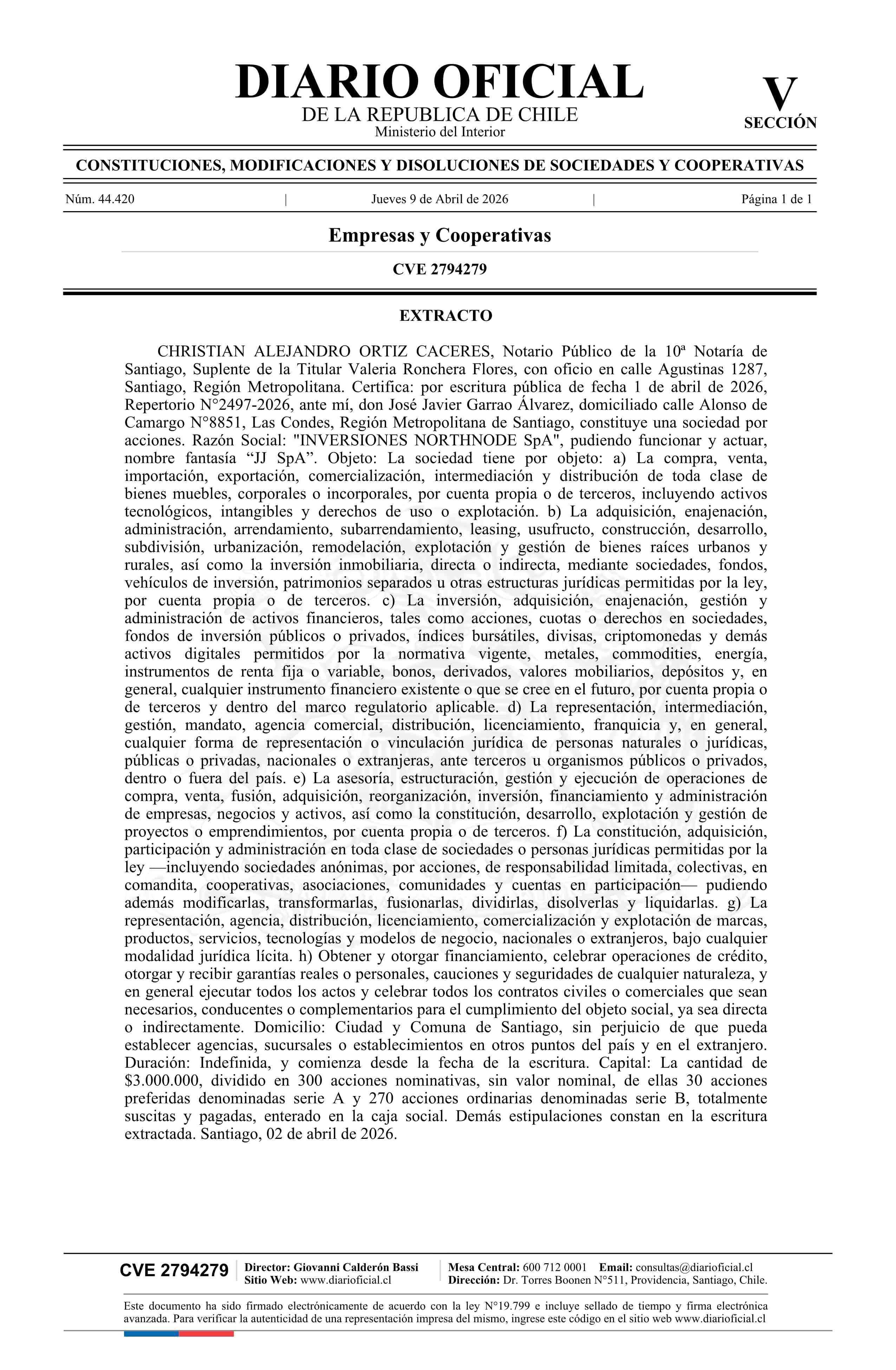 INVERSIONES NORTHNODE SpA 09-04-2026 Diario Oficial Edición Electrónica |