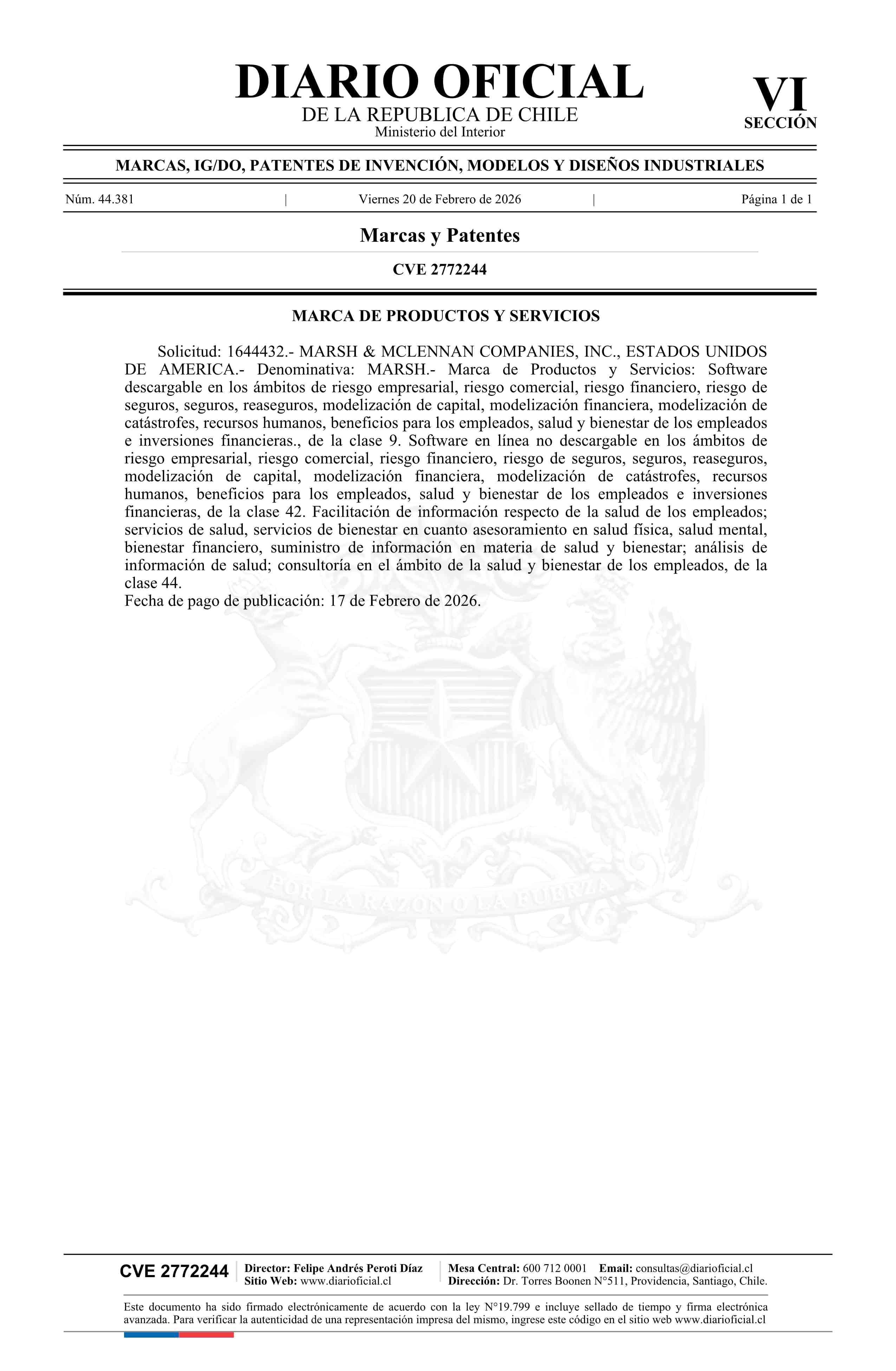 Fuente: Diario Oficial Edición Electrónica (Diario Oficial de Chile - 6 Marcas Y Patentes) Página(s): 77