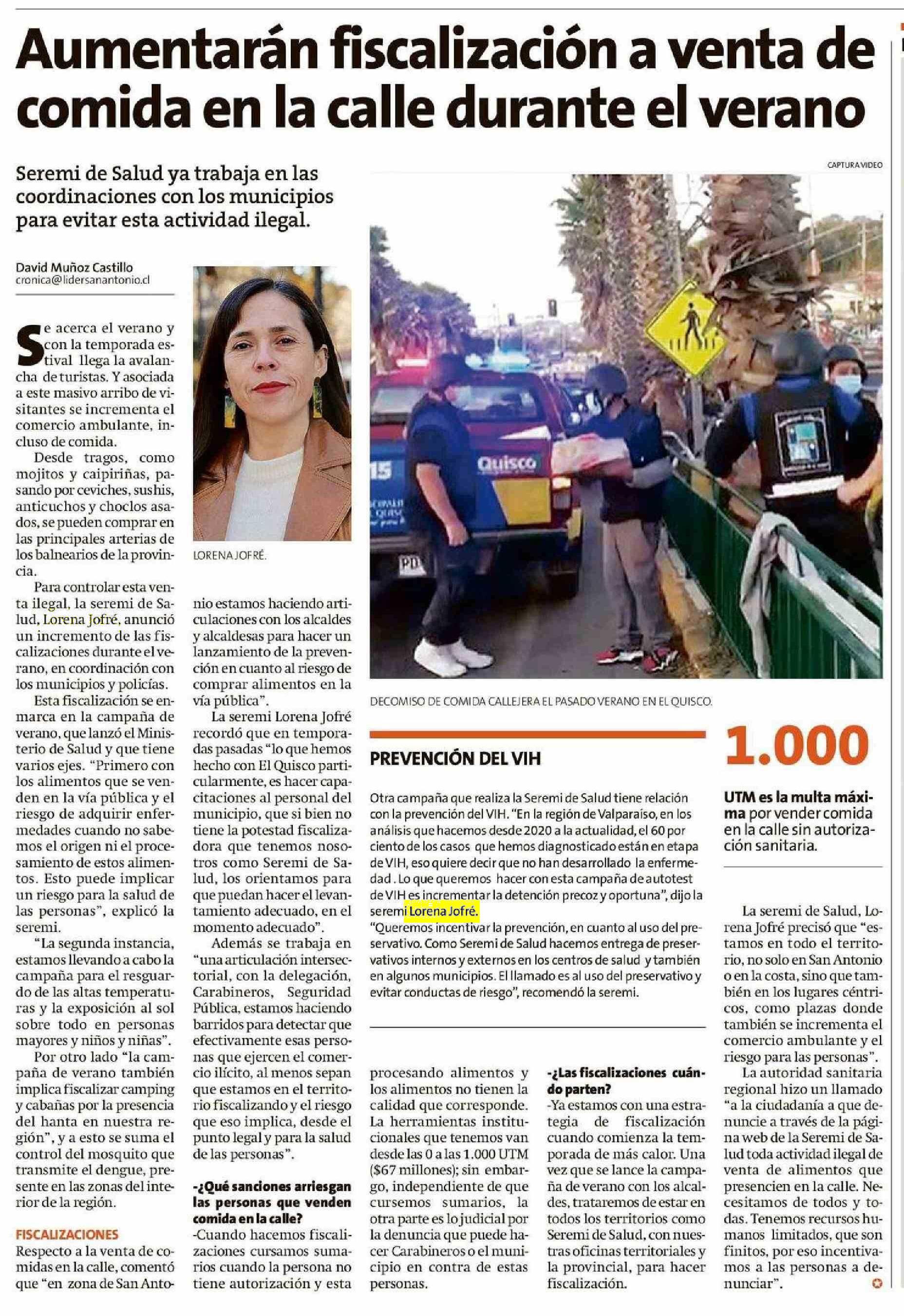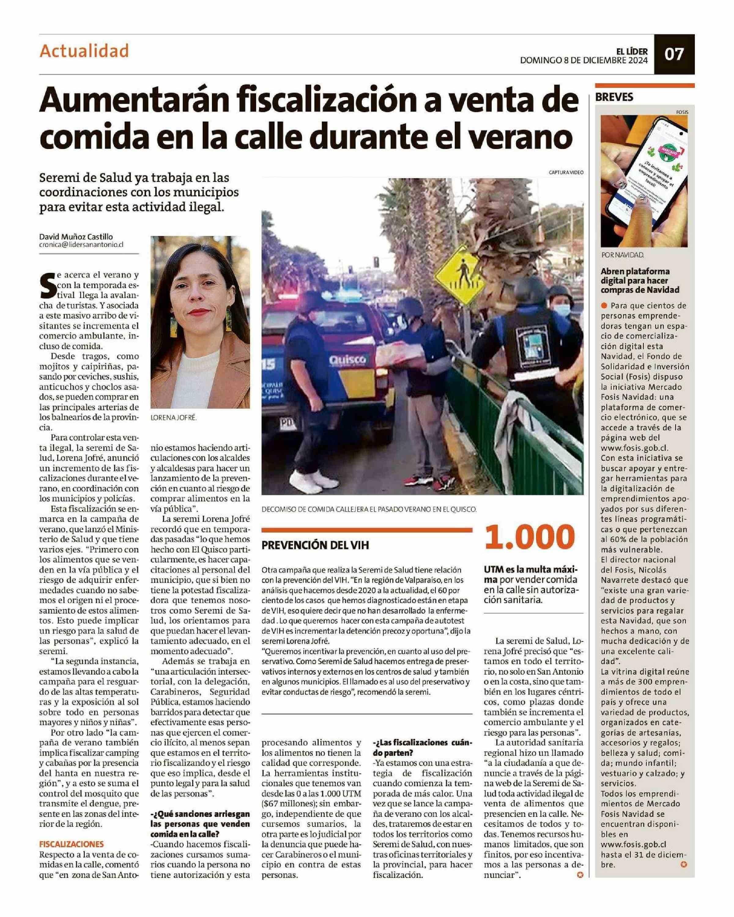 Aumentarán fiscalización a venta de comida en la calle durante el verano 08-12-2024 El Líder |