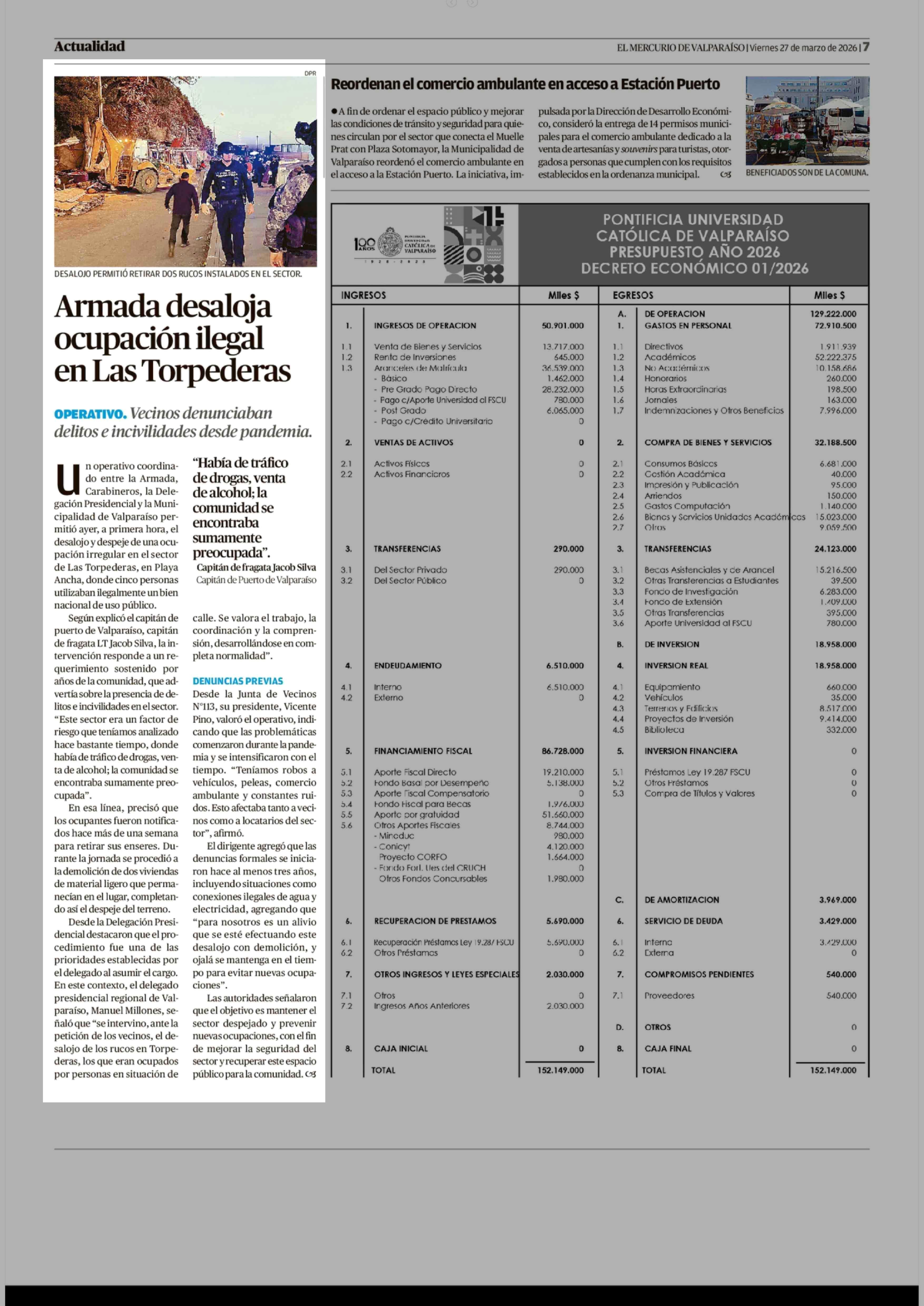 Armada desaloja ocupación ilegal en Las Torpederas 27-03-2026 El Mercurio de Valparaíso |