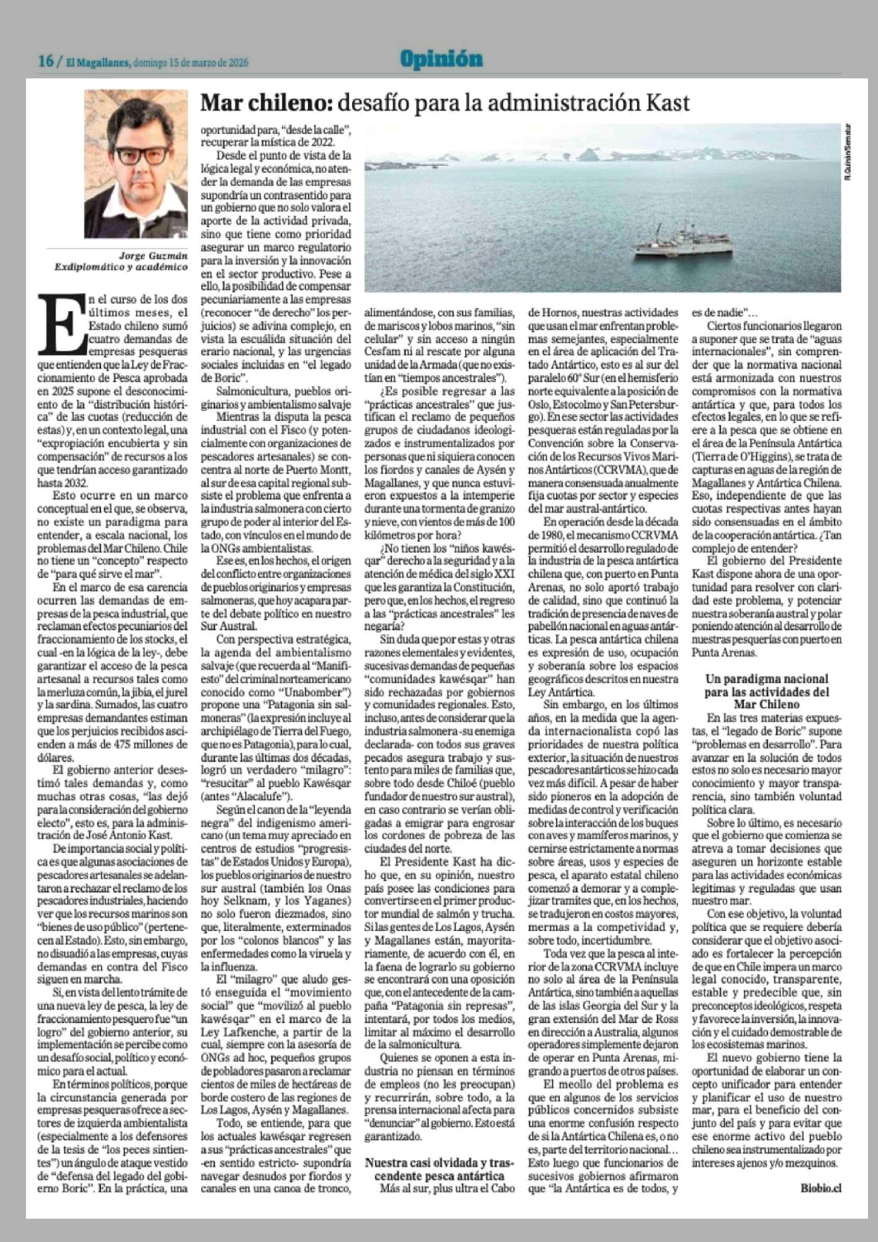 Fecha: 15-03-2026 Sector: Columnas de Opinión Región: Región de Magallanes y de la Antártica Chilena
