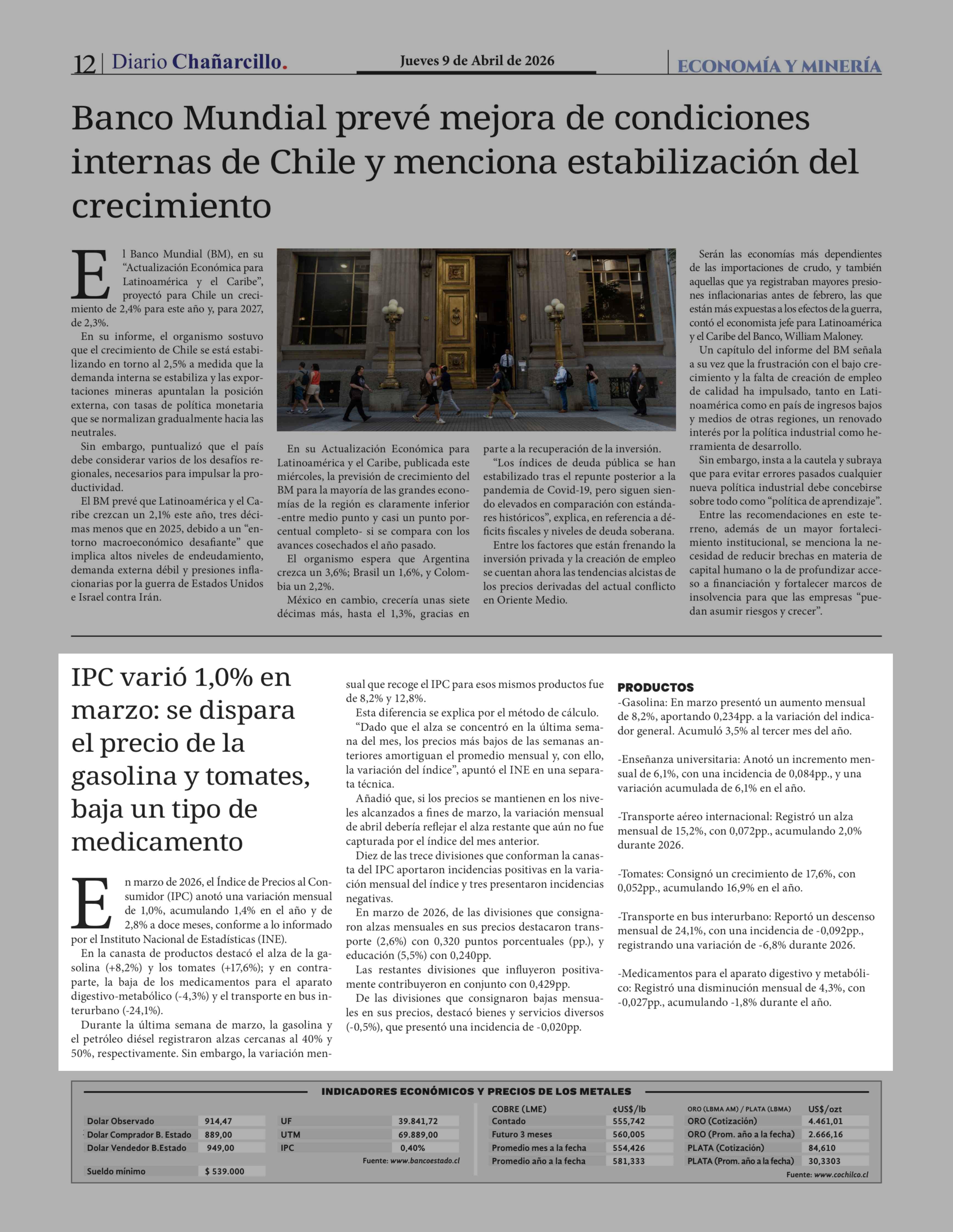 IPC varió 1,0% en marzo: se dispara el precio de la gasolina y tomates, baja un tipo de medicamento 09-04-2026 Diario Chañarcillo |