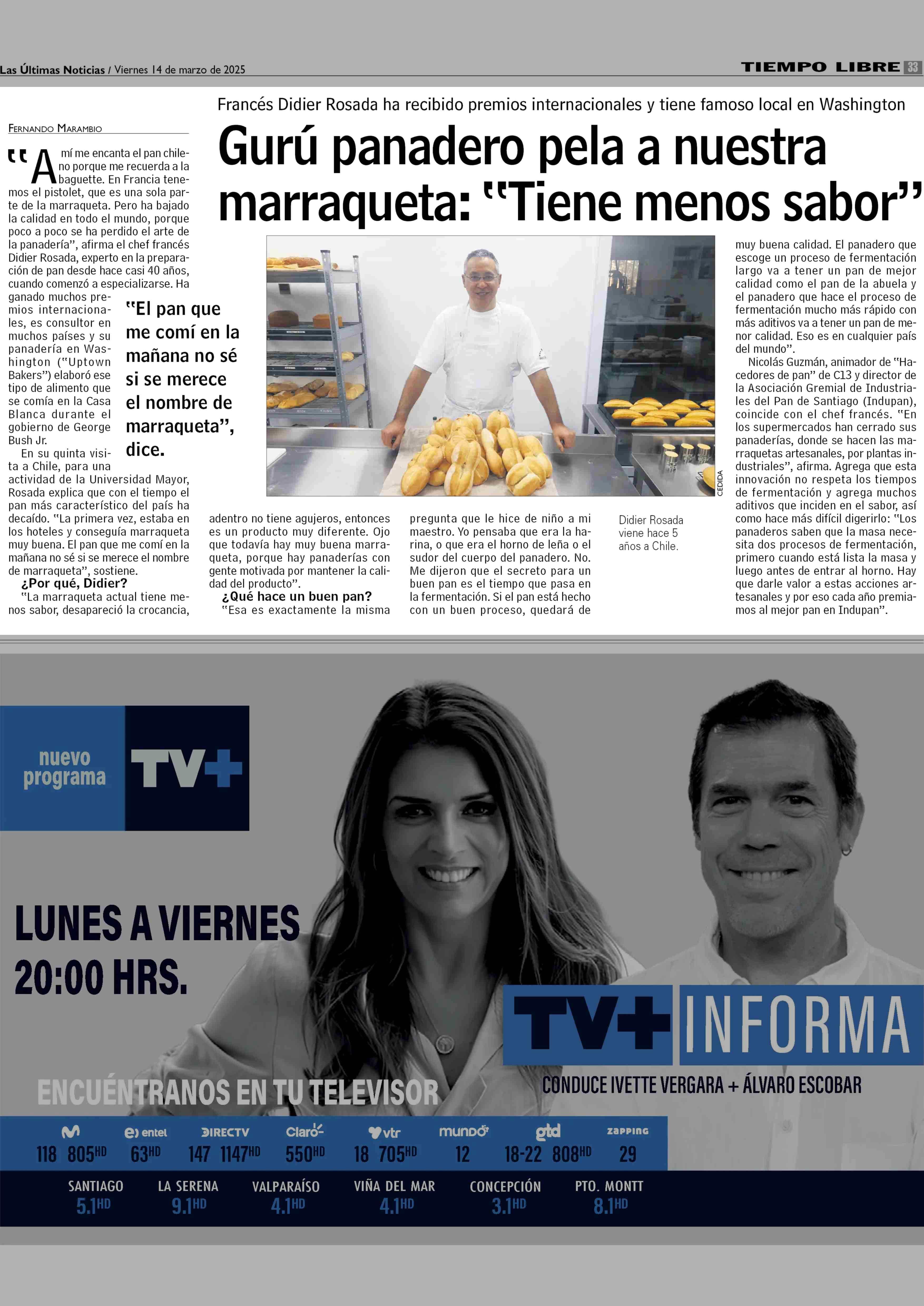 Título: Gurú panadero pela a nuestra marraqueta: "Tiene menos sabor"