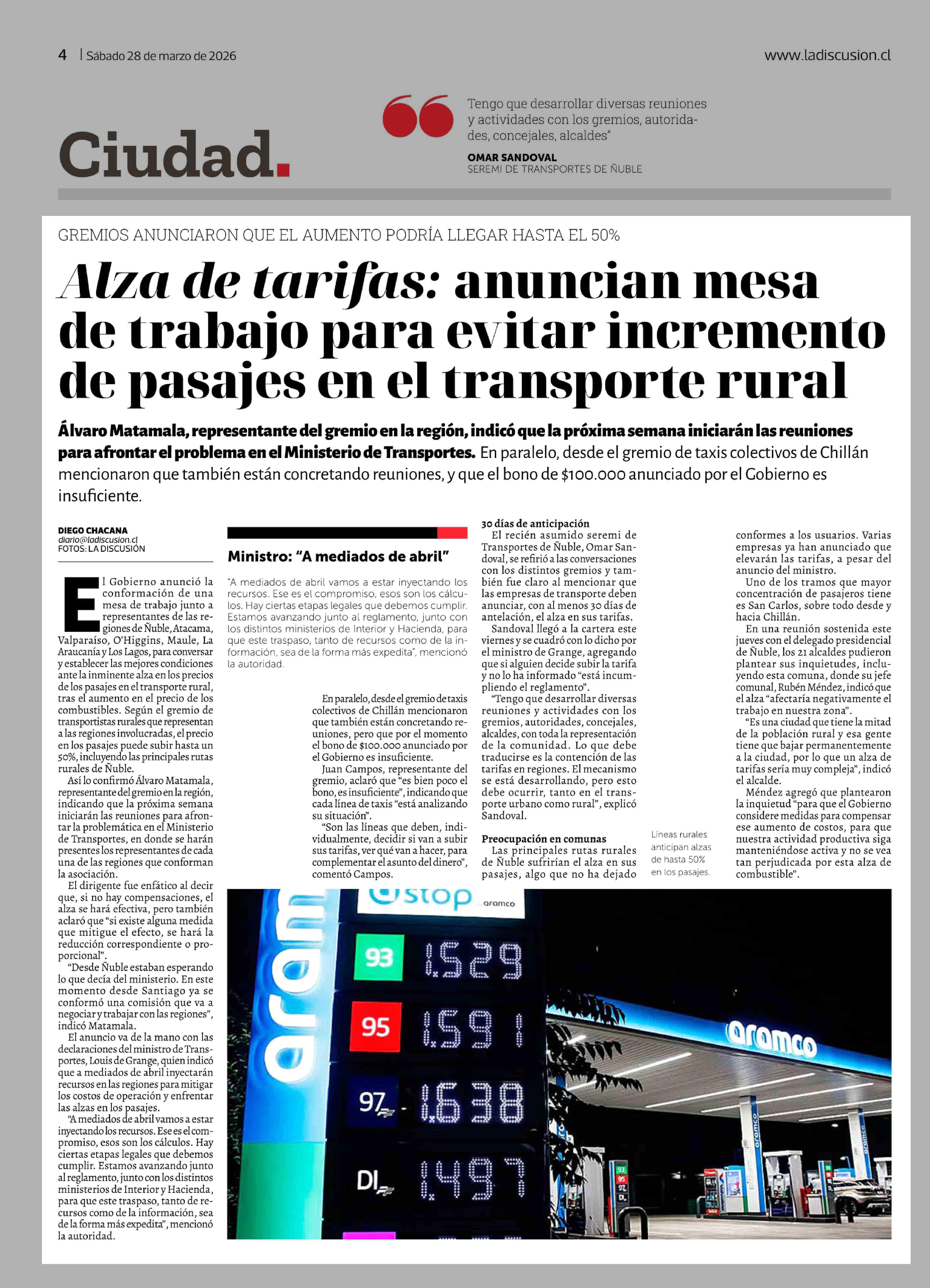 Alza de tarifas: anuncian mesa de trabajo para evitar incremento de pasajes en el transporte rural 28-03-2026 La Discusión |